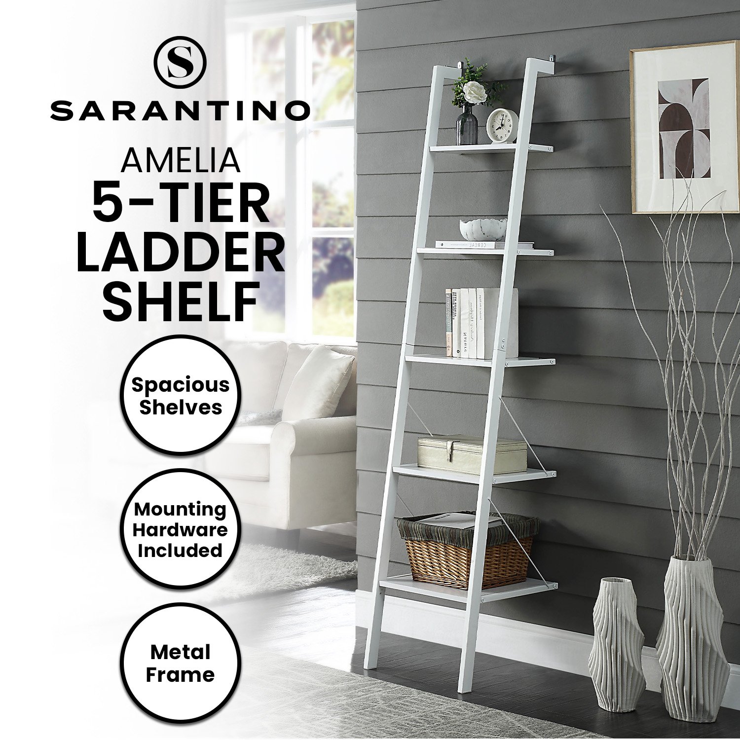 Sarantino Amelia 5-Tier Ladder Shelf in White
