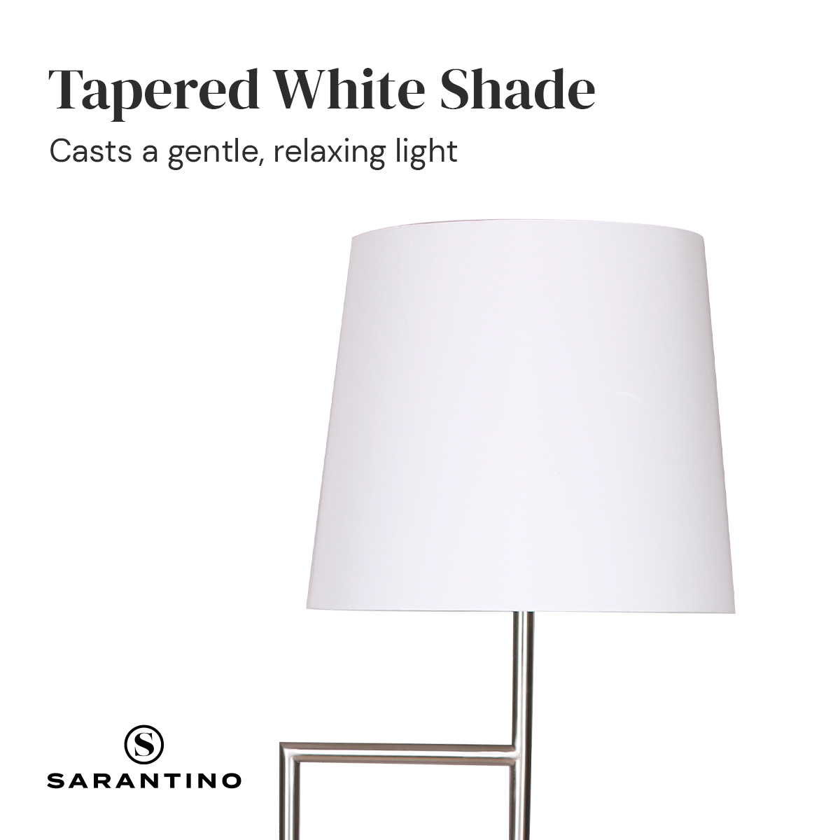 This modern floor lamp has a neat design and easily fits most decor styles from mid-century modern to traditional and contemporary. The nickel finish pairs with the tapered lampshade to make you feel warm, cozy and at home in any room. The shade directs light downwards, making this lamp perfect for a reading nook. Let the shade hang over your sofa, armchair or desk for added illumination.