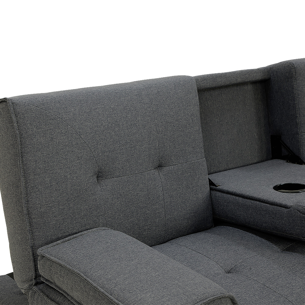 This three seater sofa bed with cup holders feature is blessed with modern looks and beautiful wooden legs, and will make a strong style statement in any home.