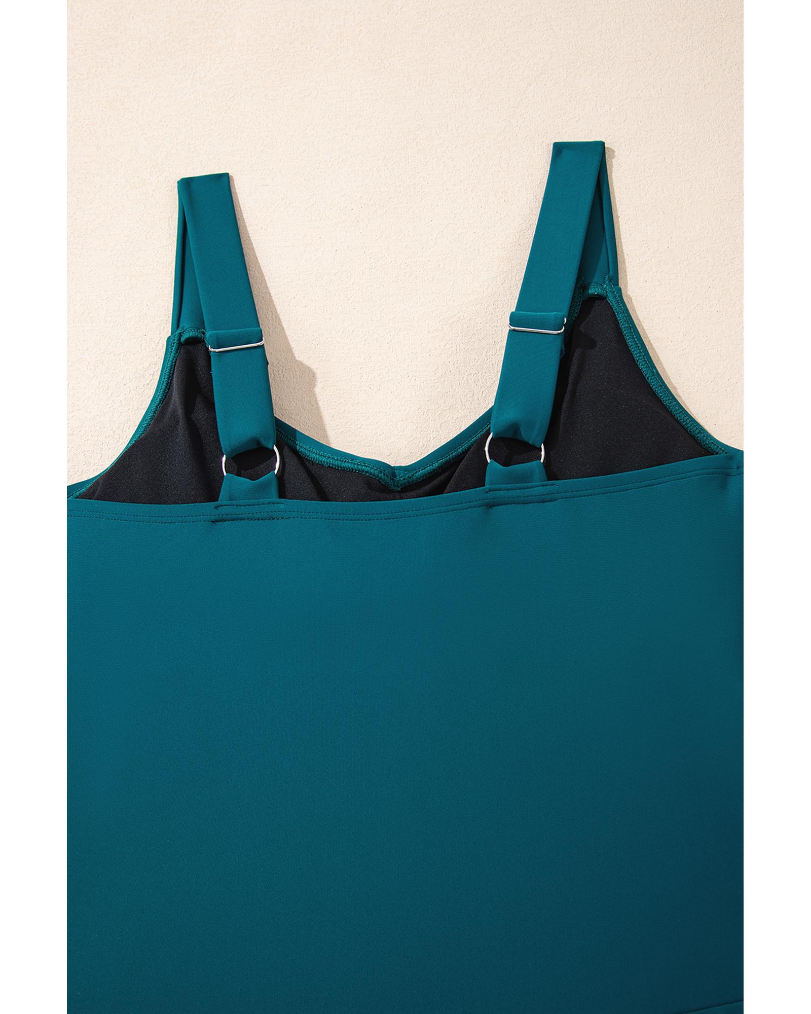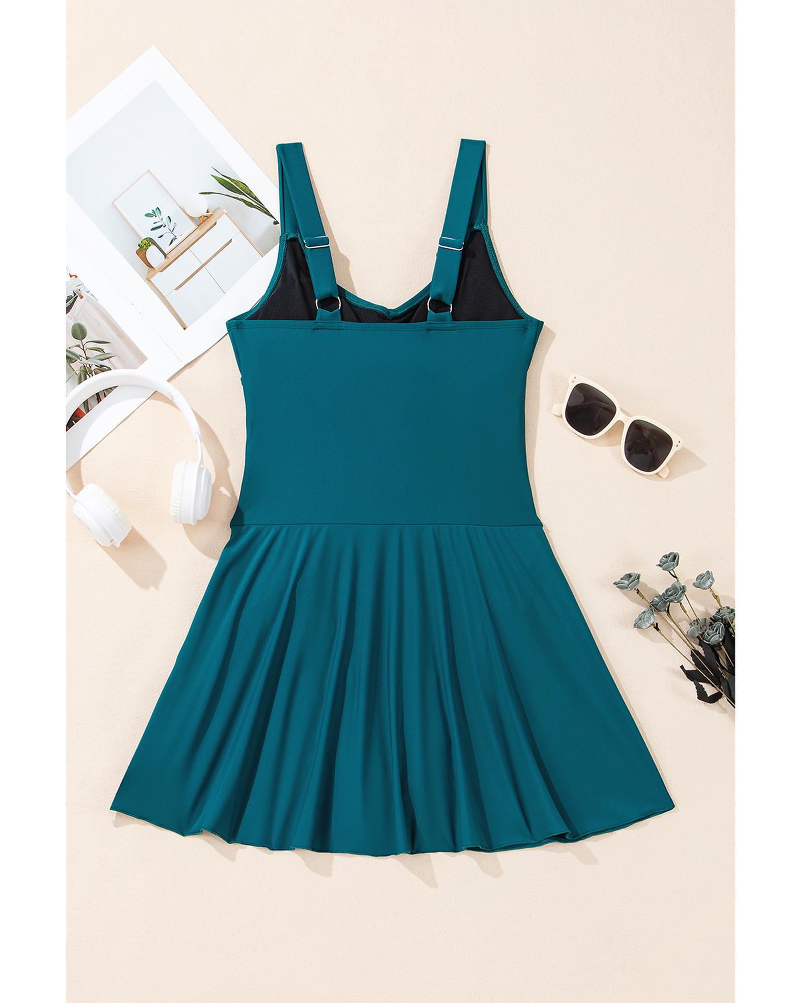 Sea Green Adjustable Straps Cutout Ruched Knot Slit One Piece Swim Dress – S
