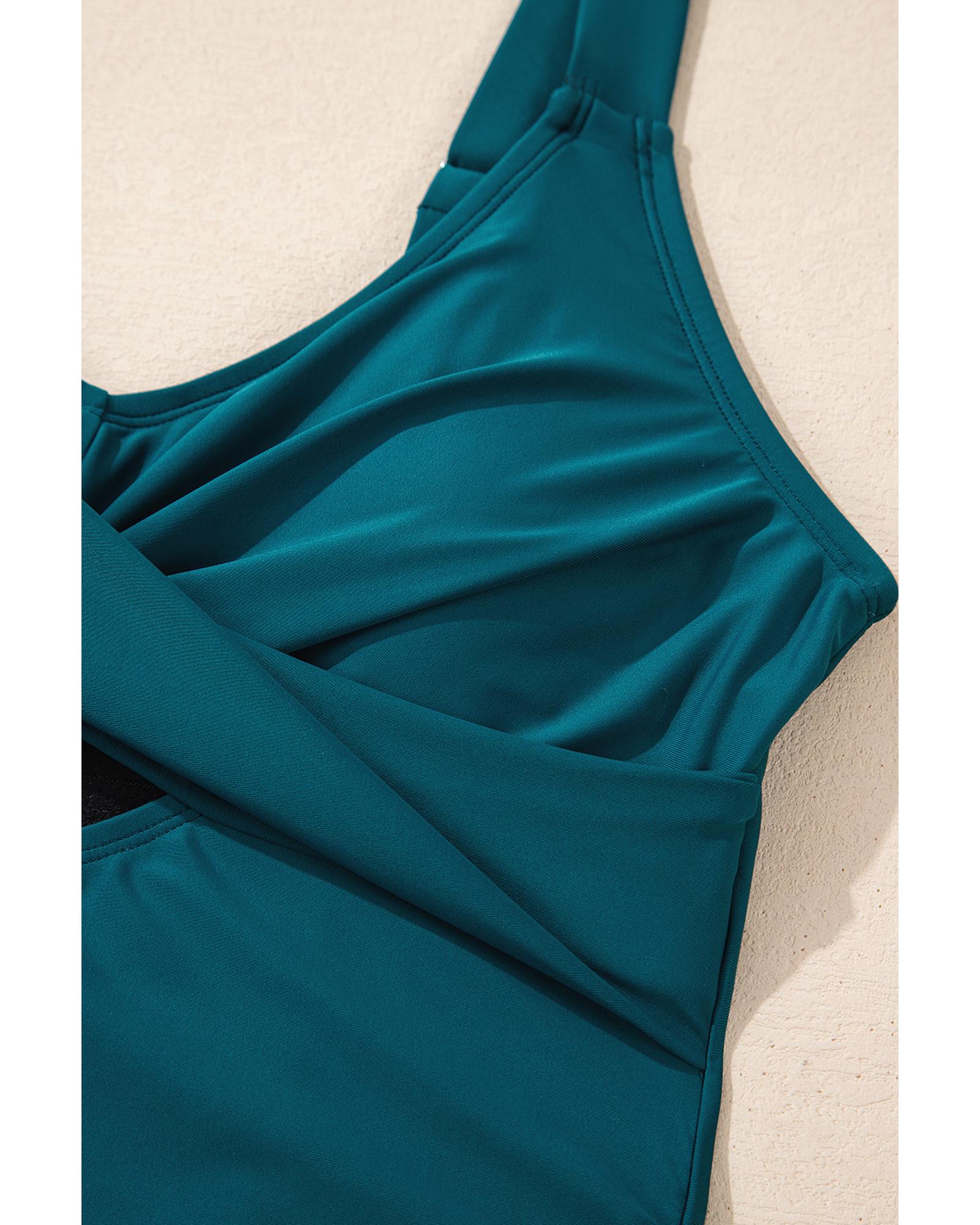 Sea Green Adjustable Straps Cutout Ruched Knot Slit One Piece Swim Dress – XL