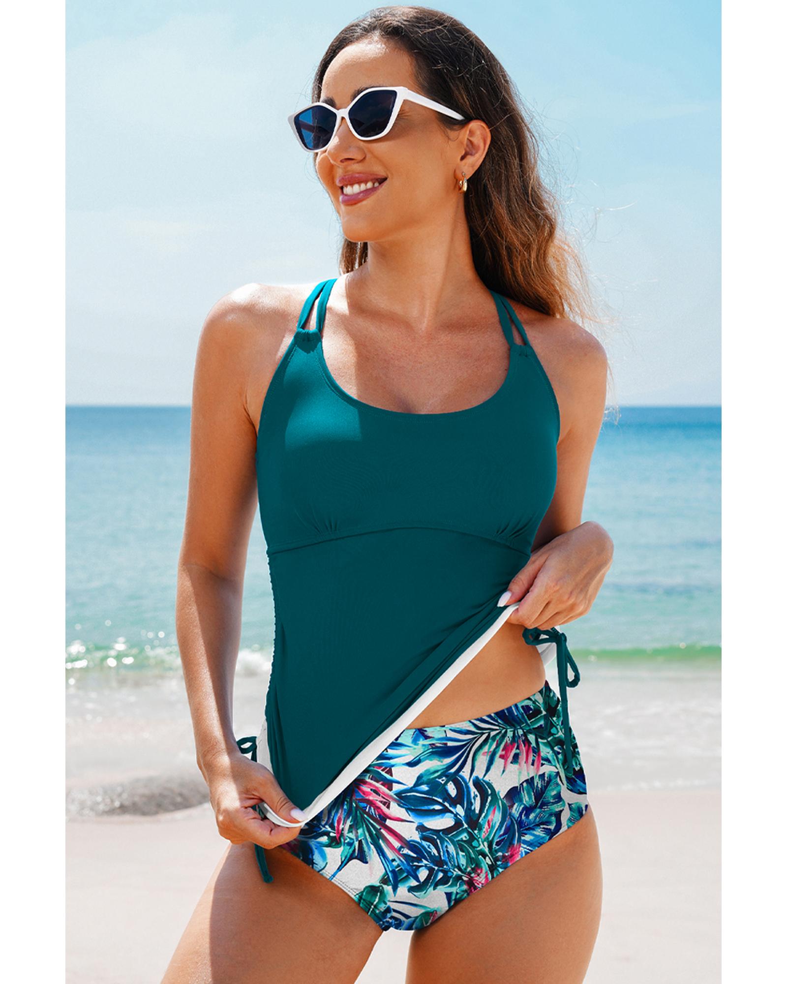 Sea Green Drawstring Tummy Control Mix-and-match 2pcs Tankini Swimsuit – S