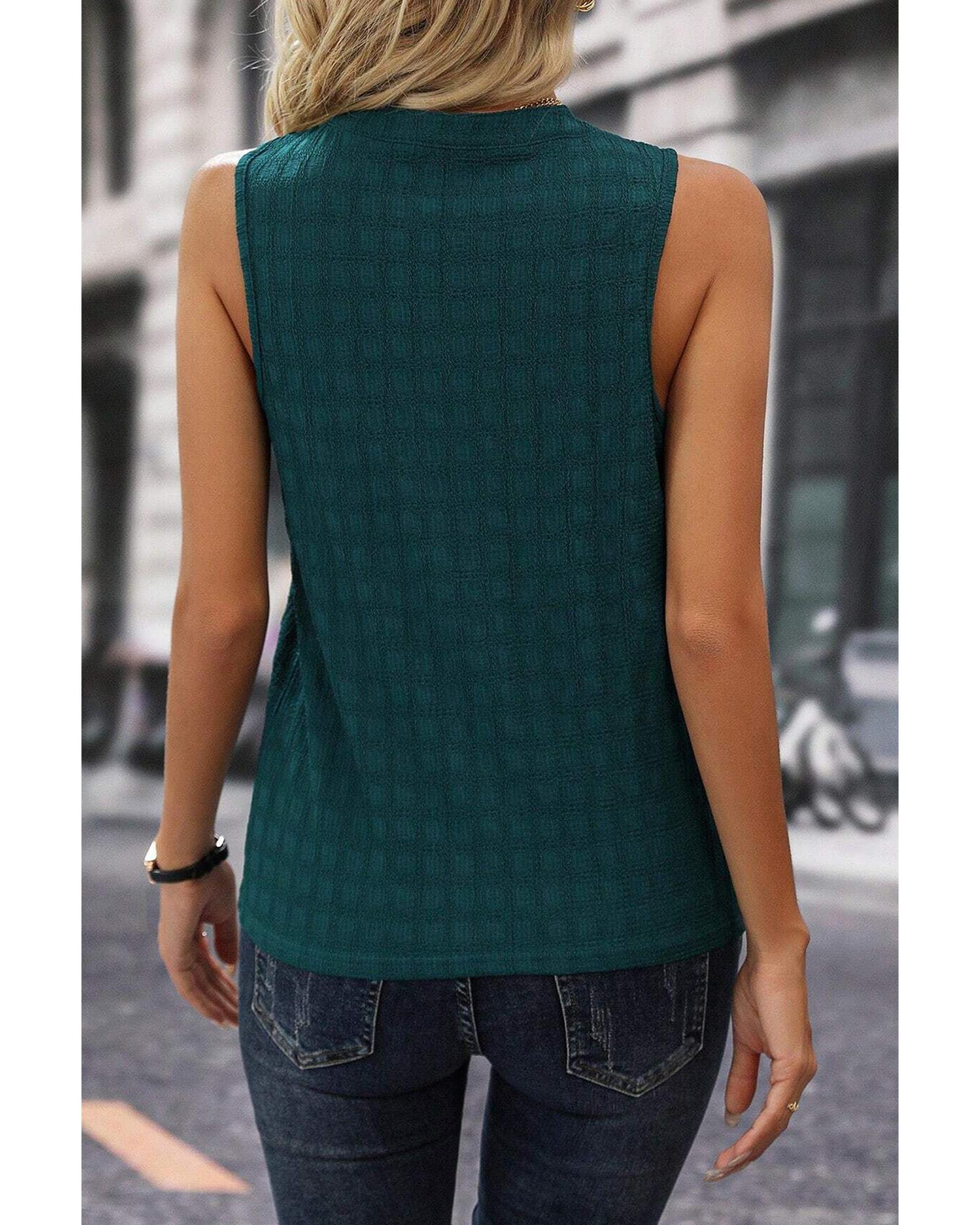 Sea Green Lattice Textured Split Neck Tank Top – S