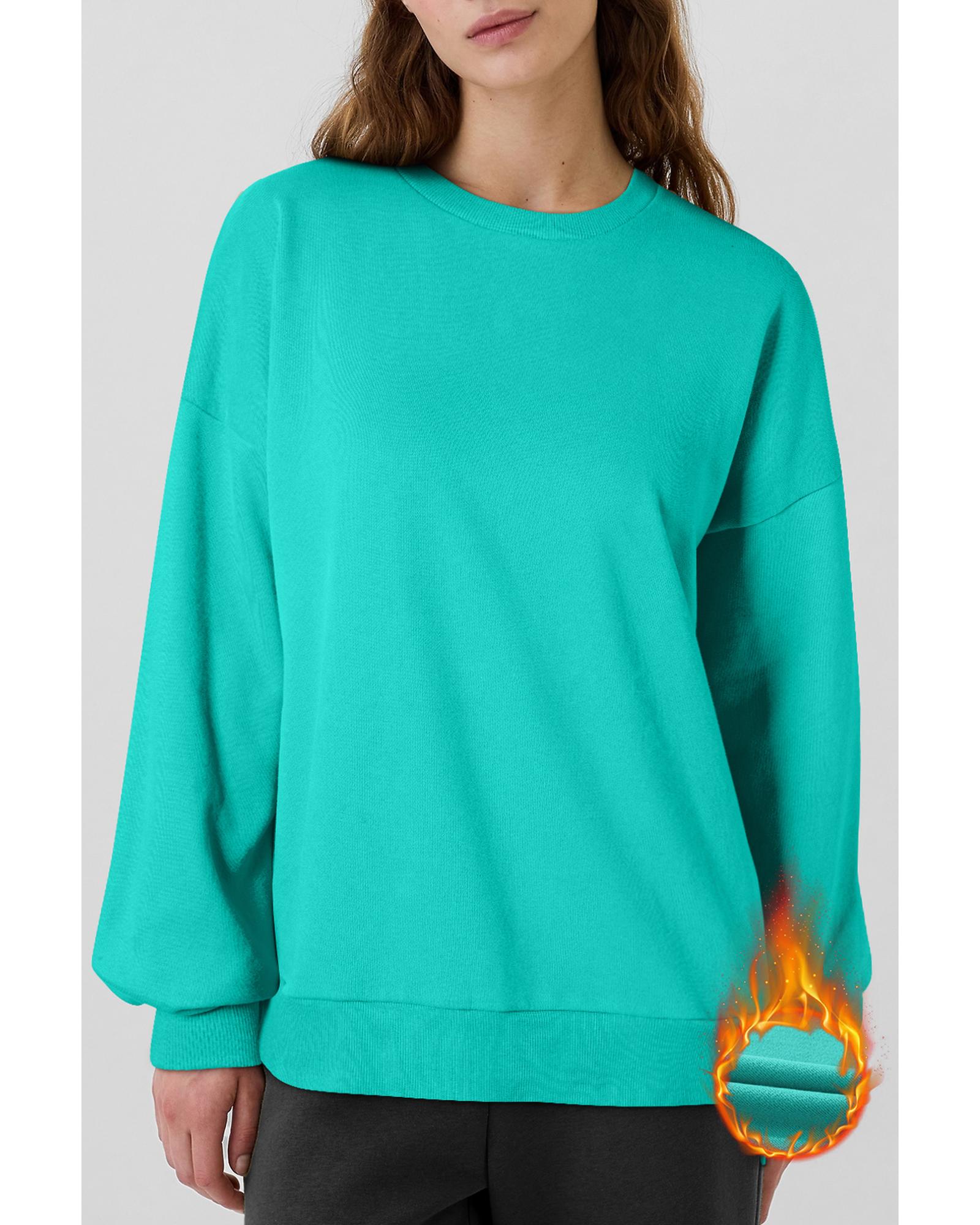 Sea Green Solid Fleece Lined Drop Shoulder High Low Sweatshirt – XL