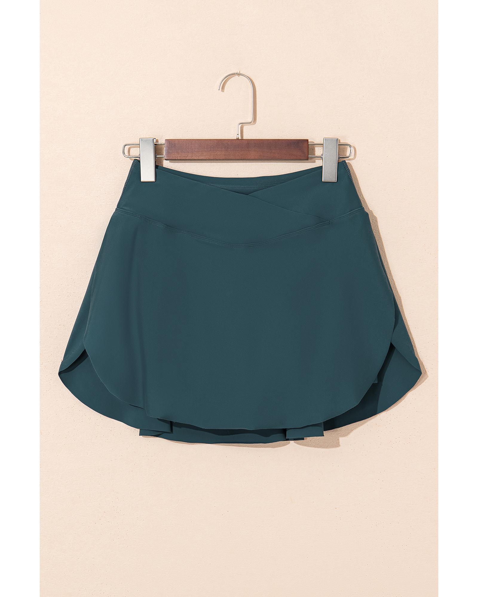 Sea Green Solid Pocketed Crossover High Waist Swim Skort - S