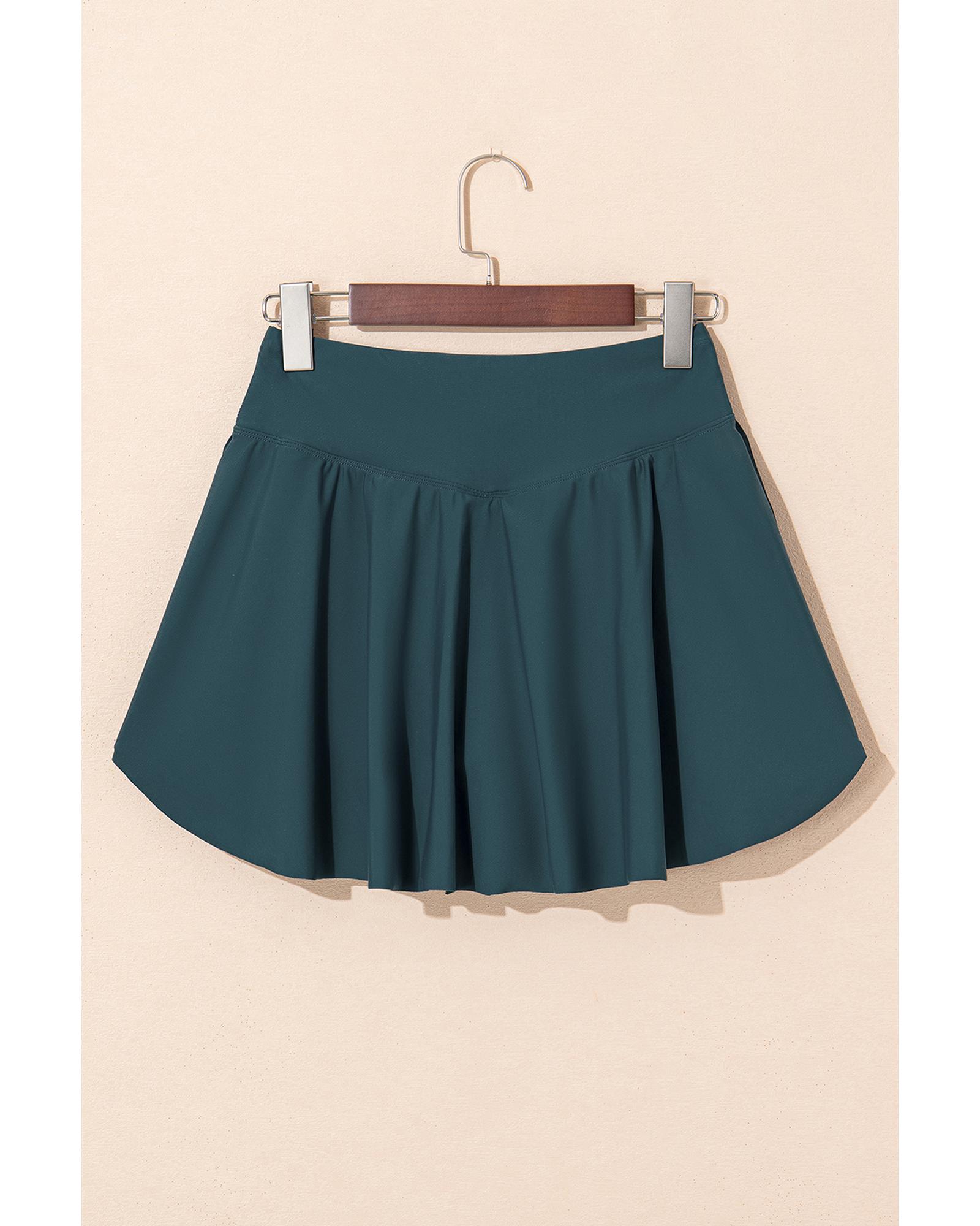 Sea Green Solid Pocketed Crossover High Waist Swim Skort – M