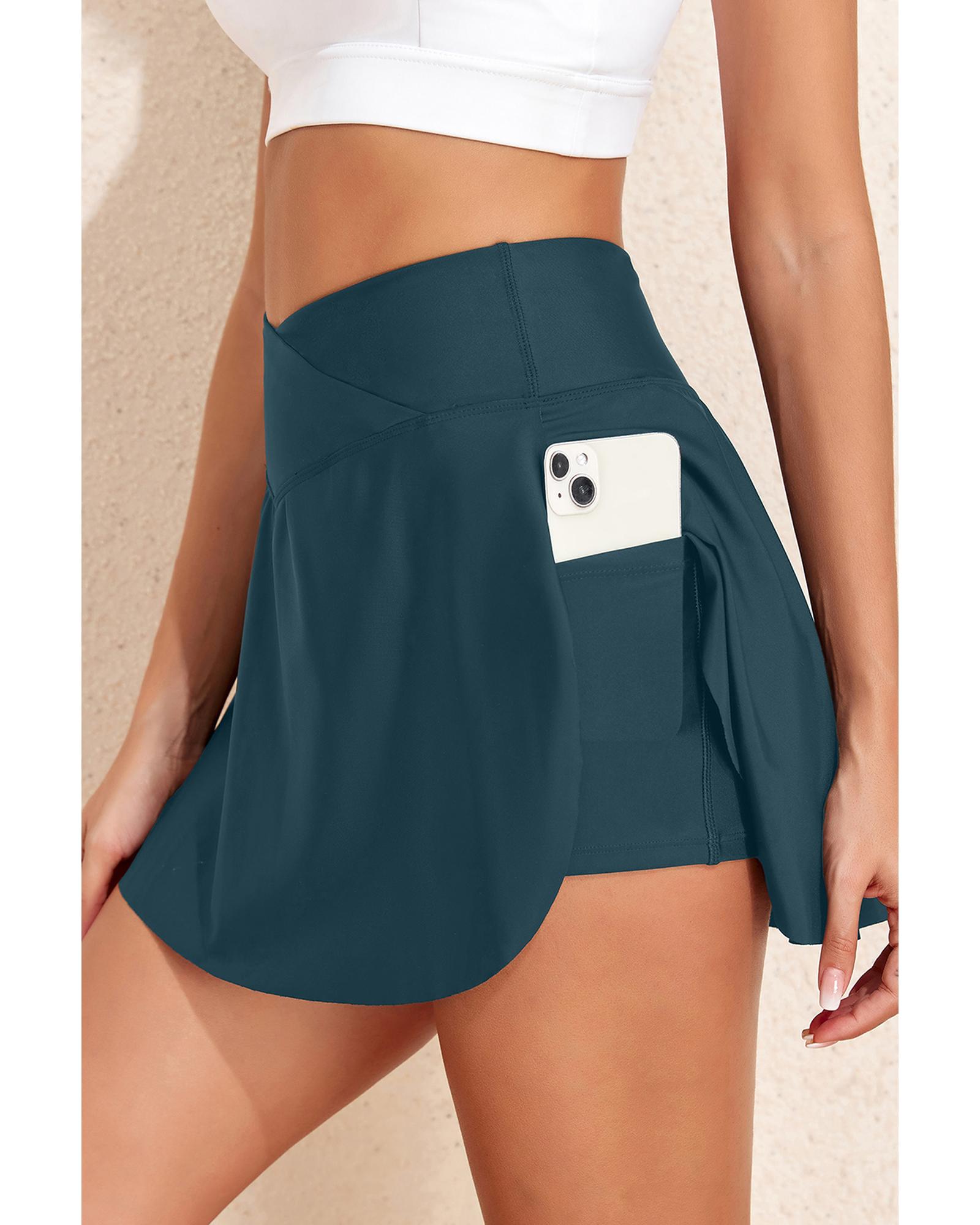 Sea Green Solid Pocketed Crossover High Waist Swim Skort - XL
