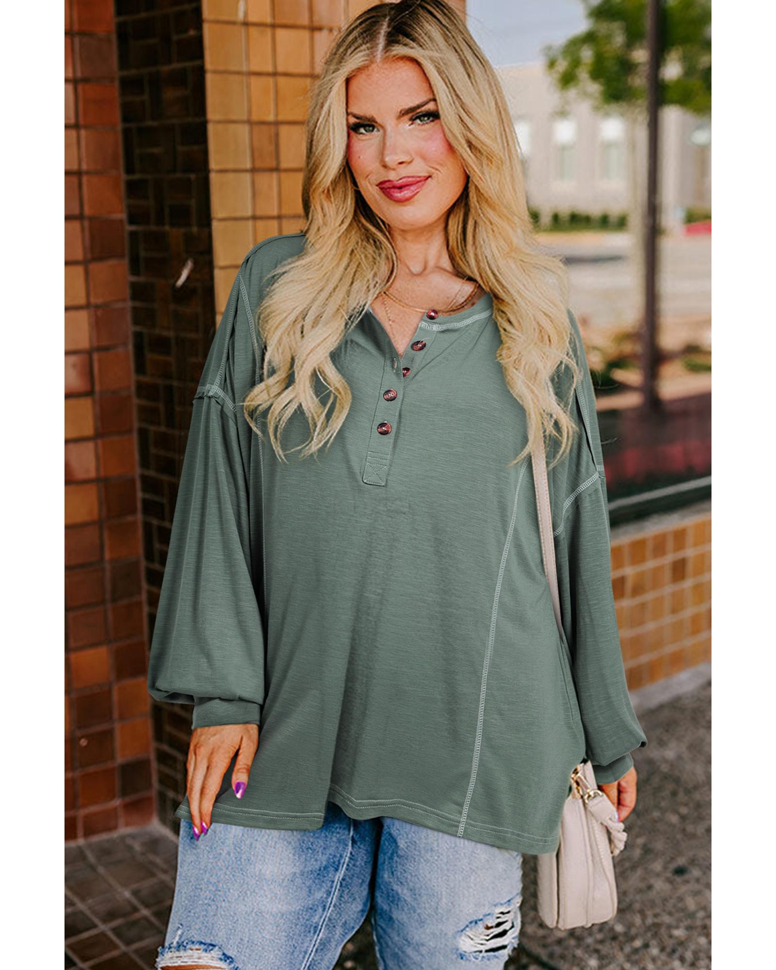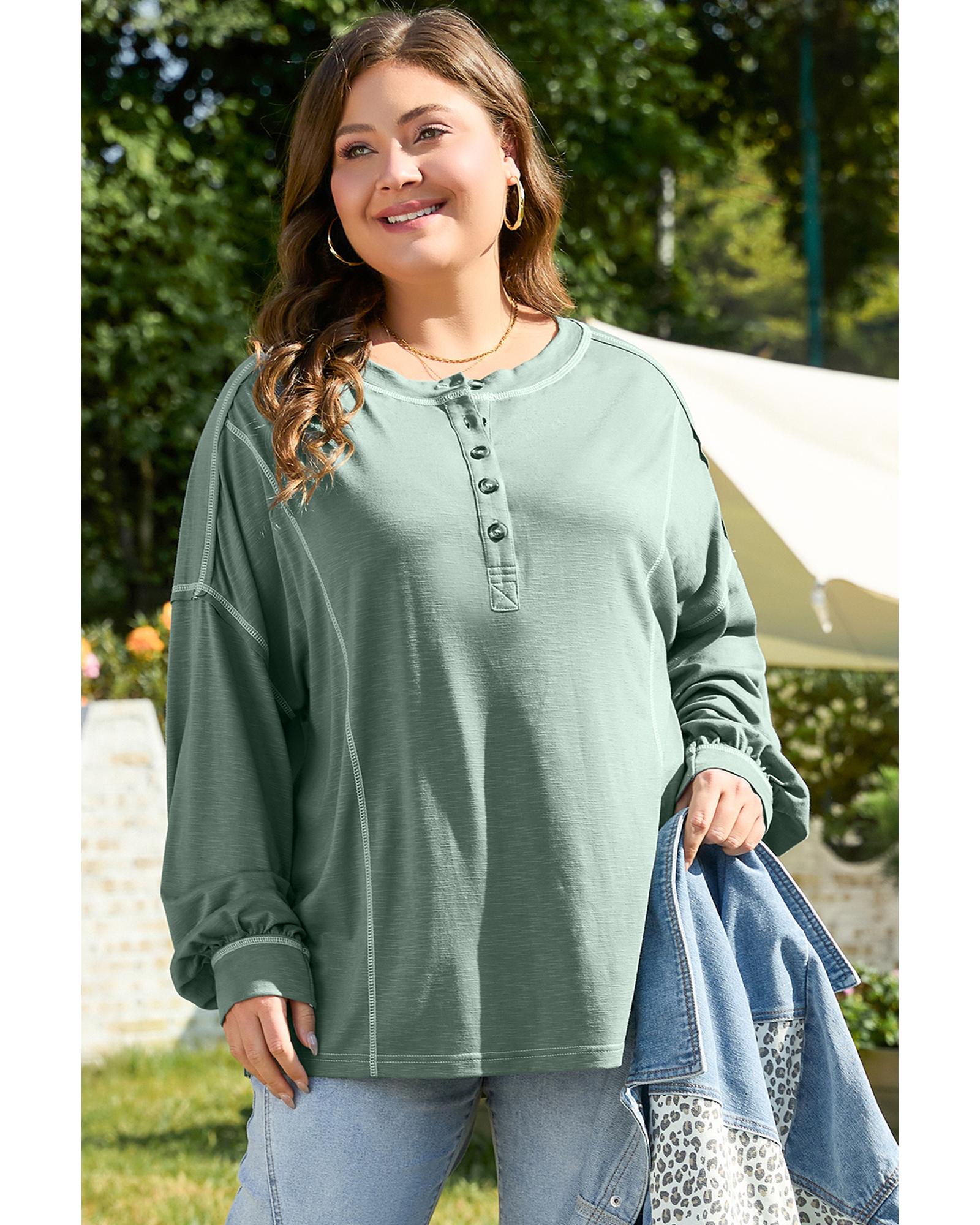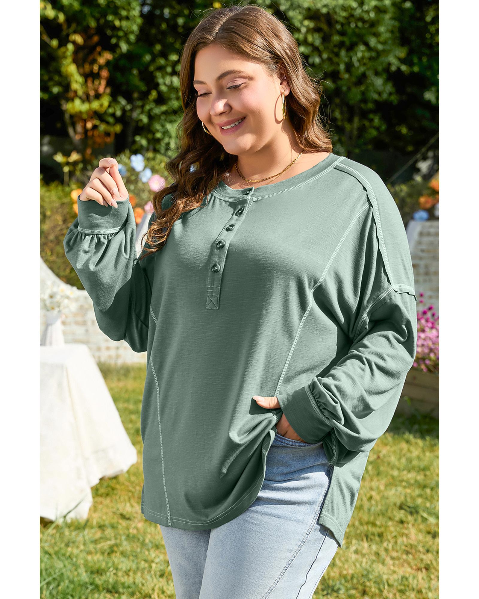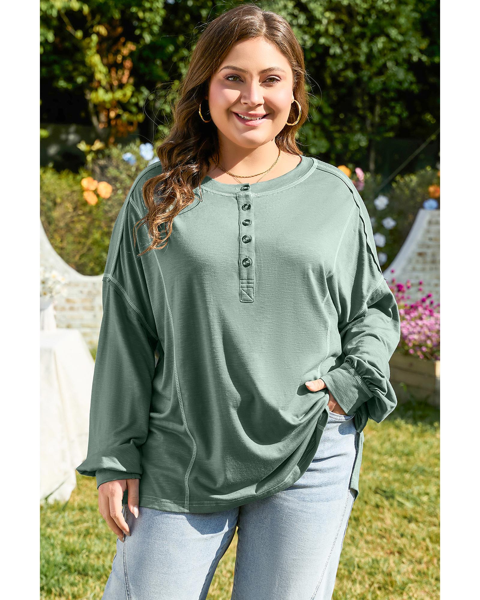 Seagrass Plus Size Exposed Seam Drop Shoulder Henley Top – 1X