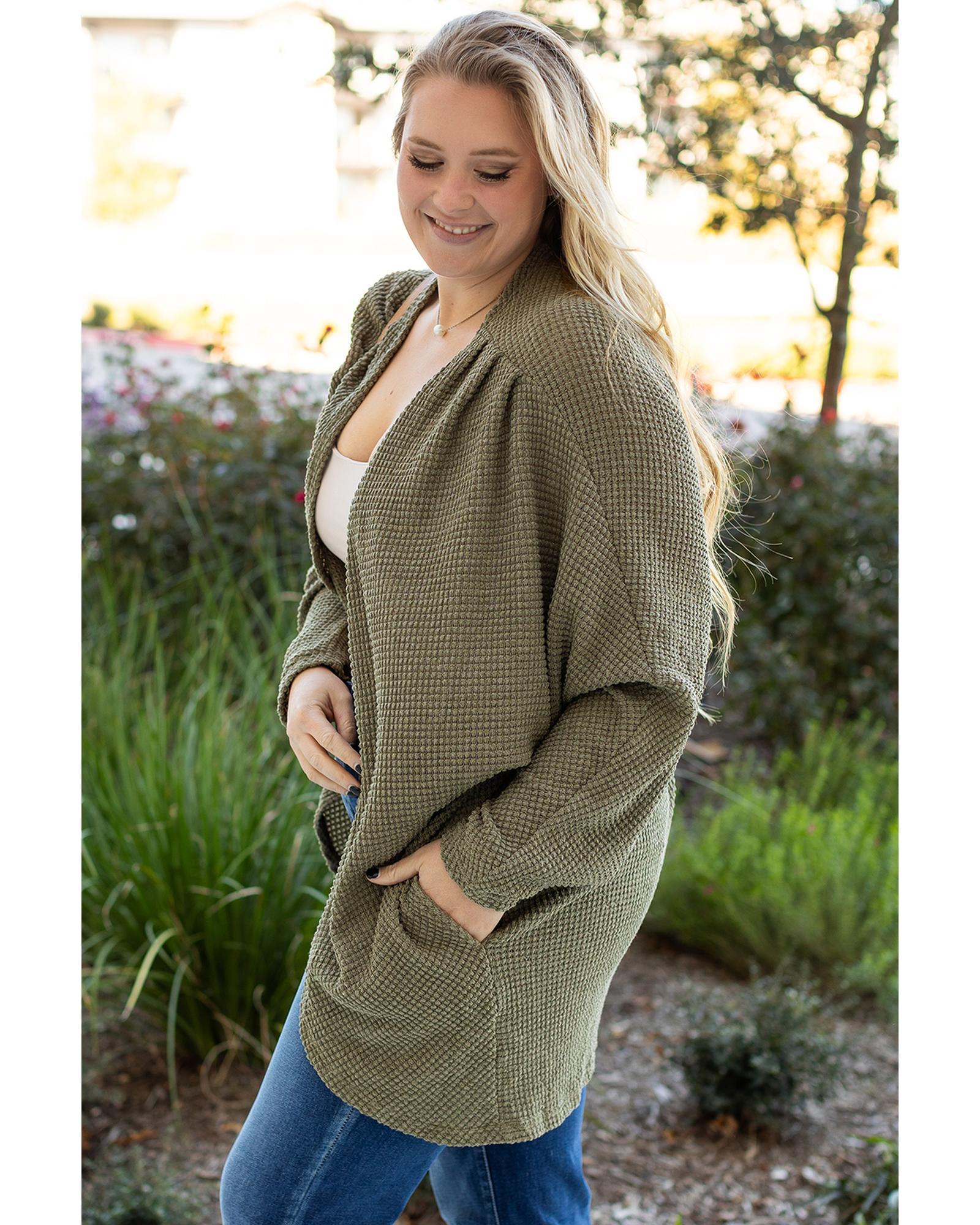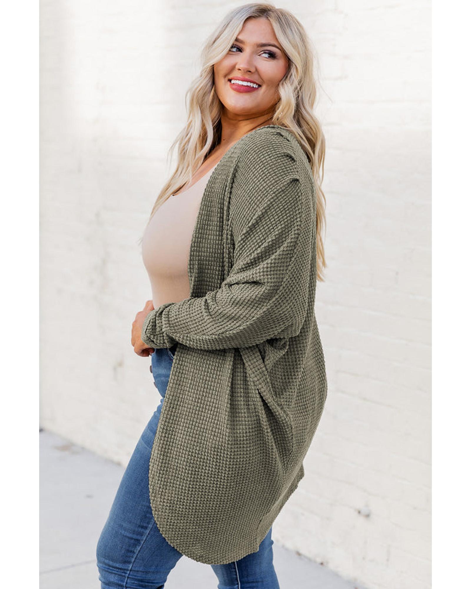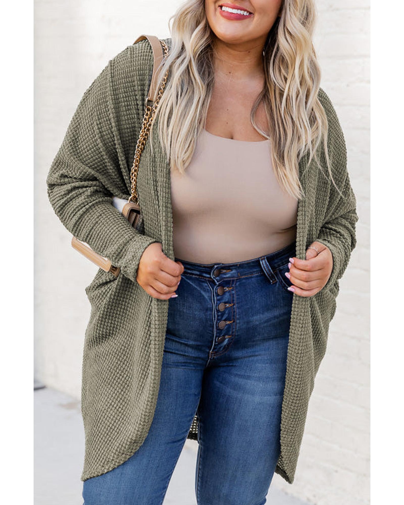 Seagrass Waffle Knit Drop Shoulder Open Front Pocketed Plus Size Cardigan – 1X