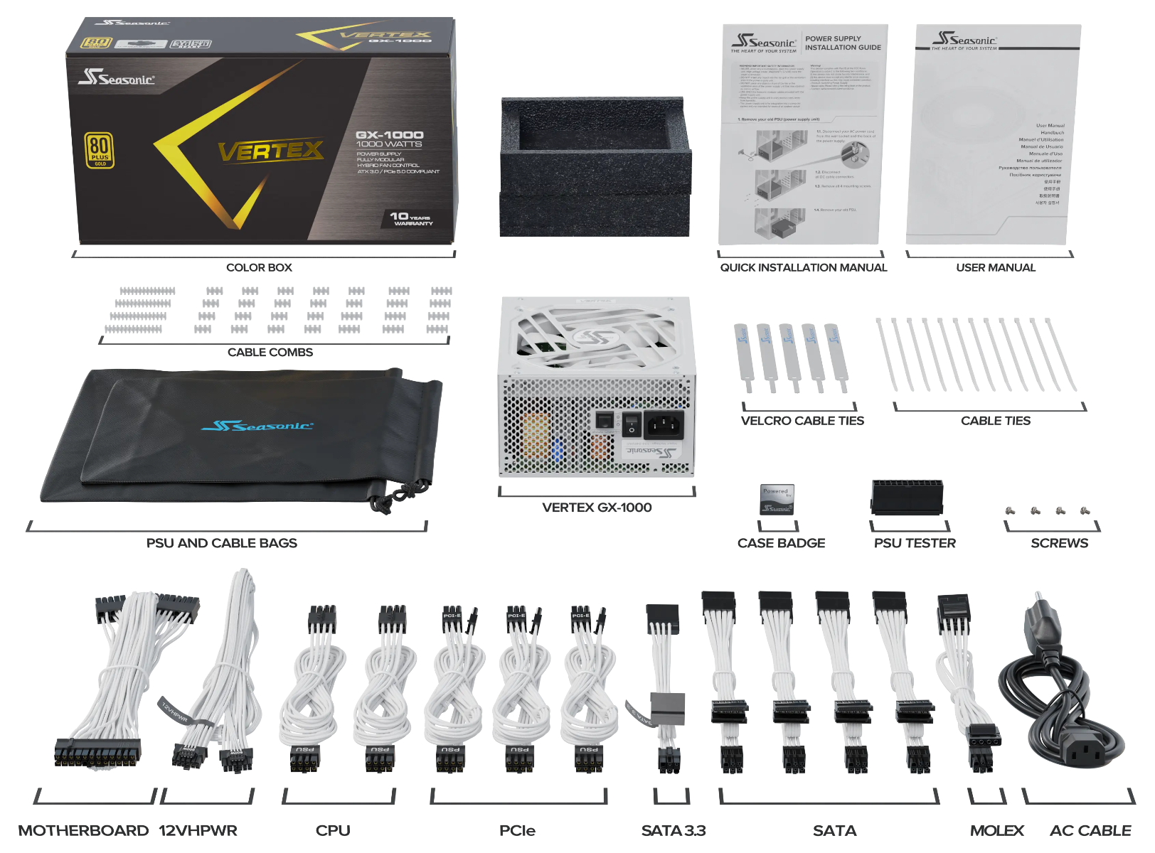Seasonic VERTEX GX-1000 White 1000W ATX 3.0 Gold Modular PSU