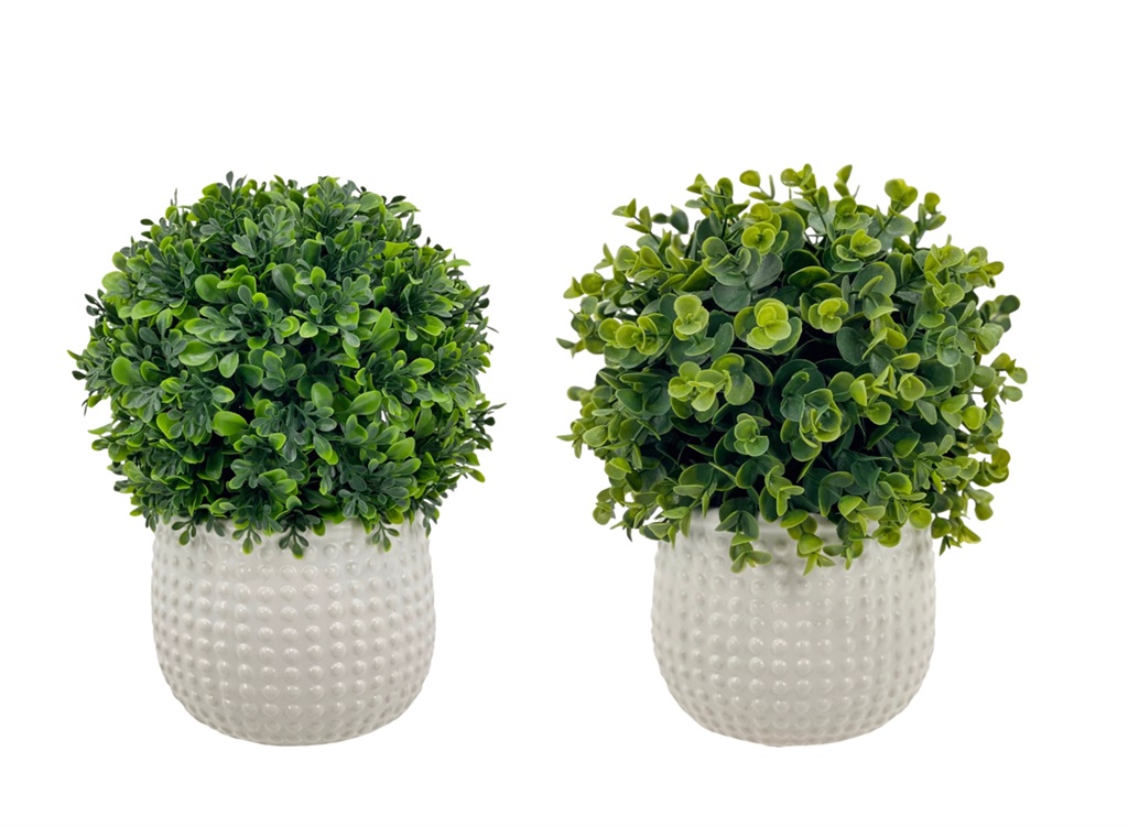 1 x Set 2 Faux Boxwood Topiary Ball In Ceramic Pot