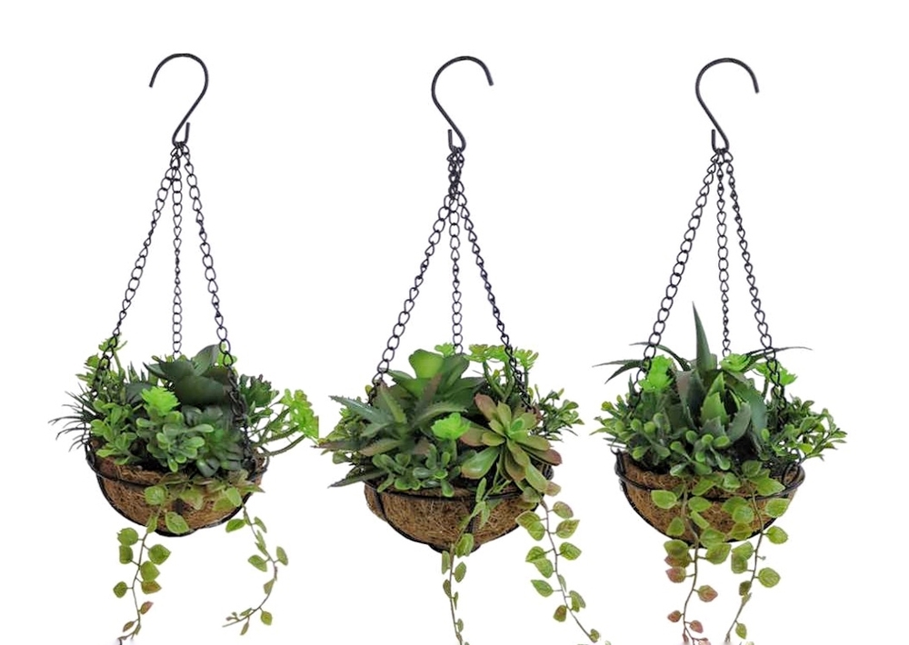 1 x Set 3 Faux Hanging Planter Succulents Assort