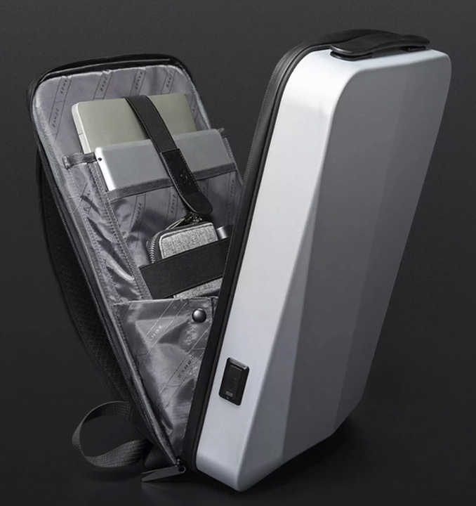 Silver Premium Hard Shell Business Backpack with TSA Lock and USB Charging Port, Waterproof Laptop Bag for Men