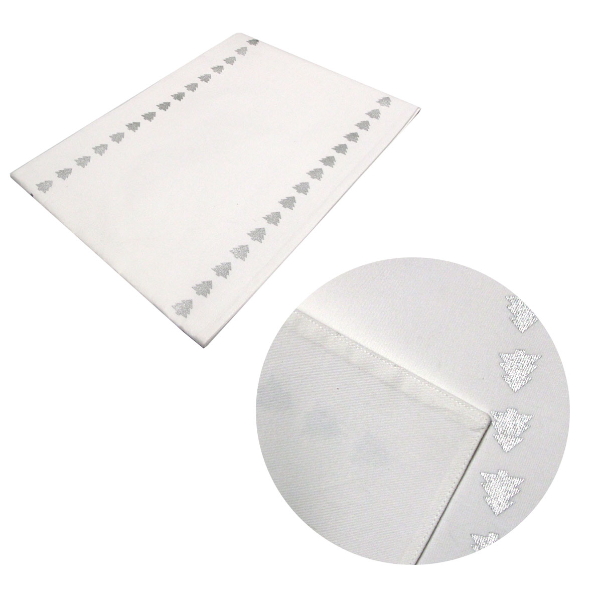 Silver Trees Cotton Metallic Print Table Runner 33 x 180 cm