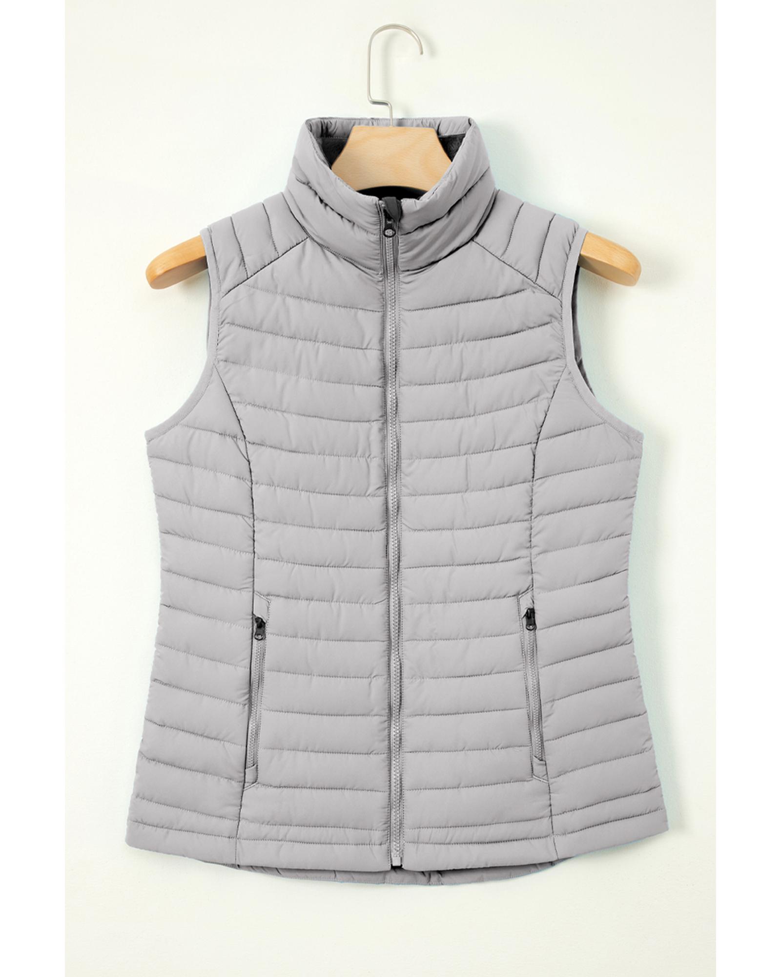 Silvery Plush Collared Quilted Zipped Puffer Vest - M Original price was: $93.99.Current price is: $50.99.