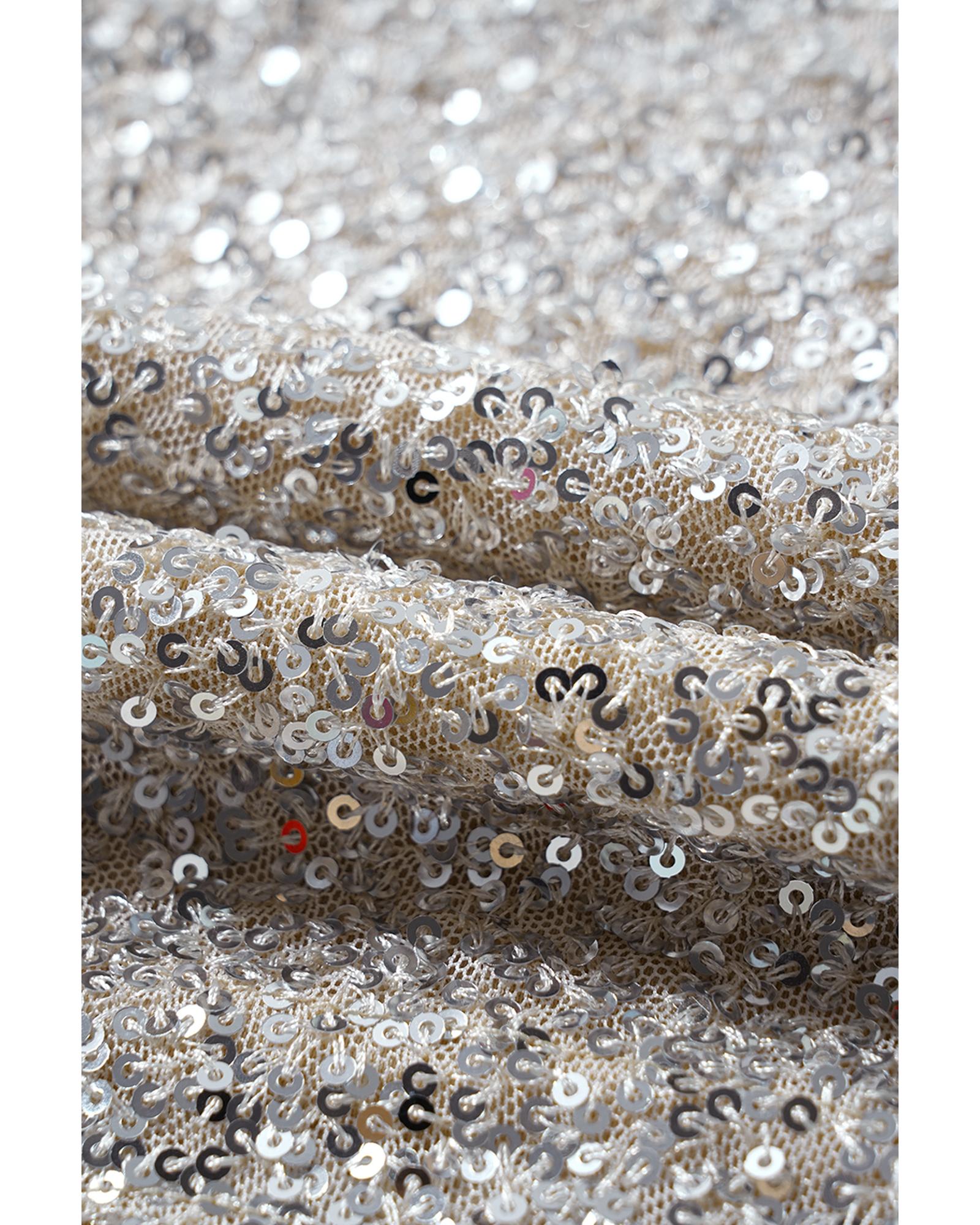 Silvery Sequin Puff Sleeve Cutout Back Blouse – M