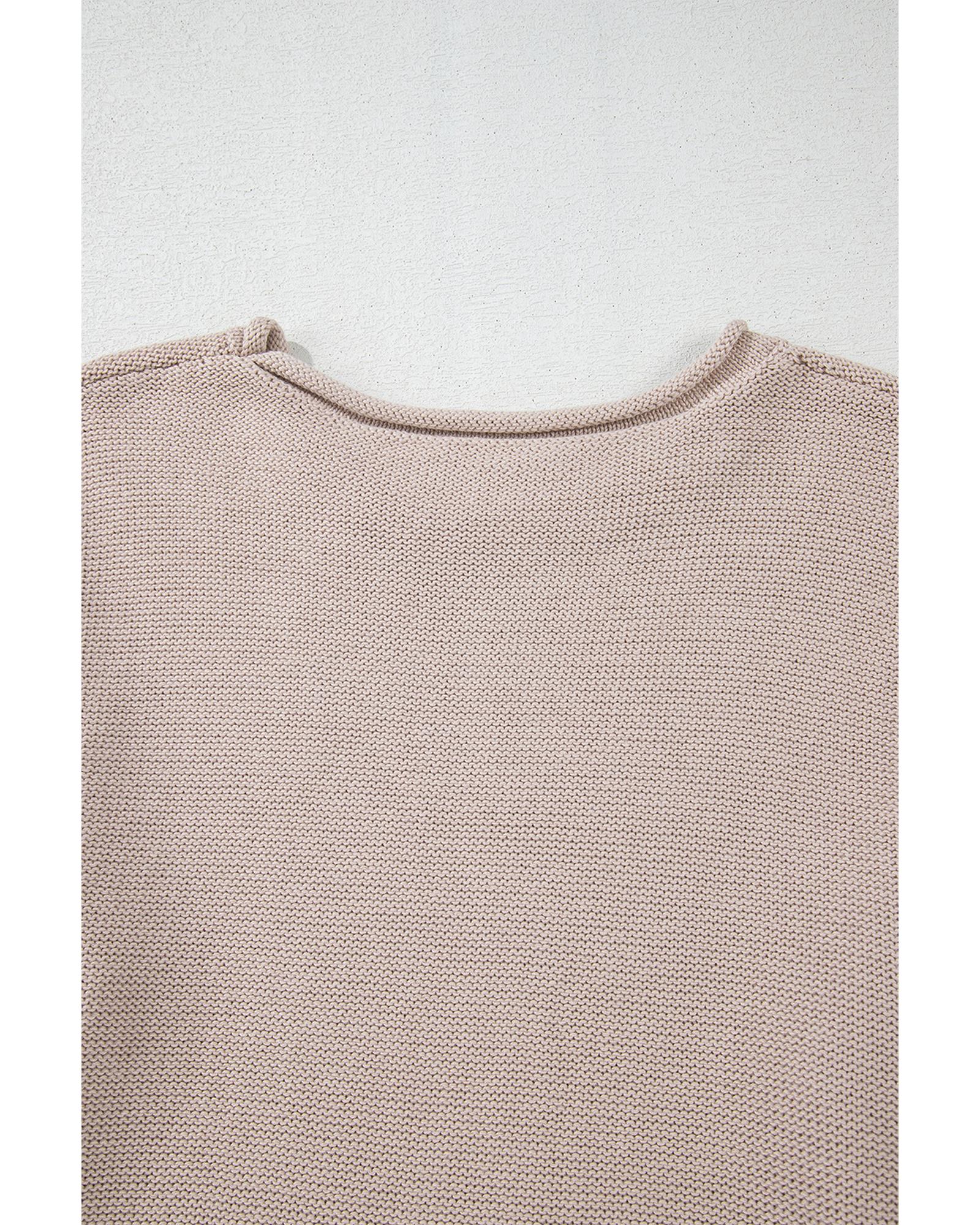 Simply Taupe Colorblock Exposed Seam Round Neck Sweater – M