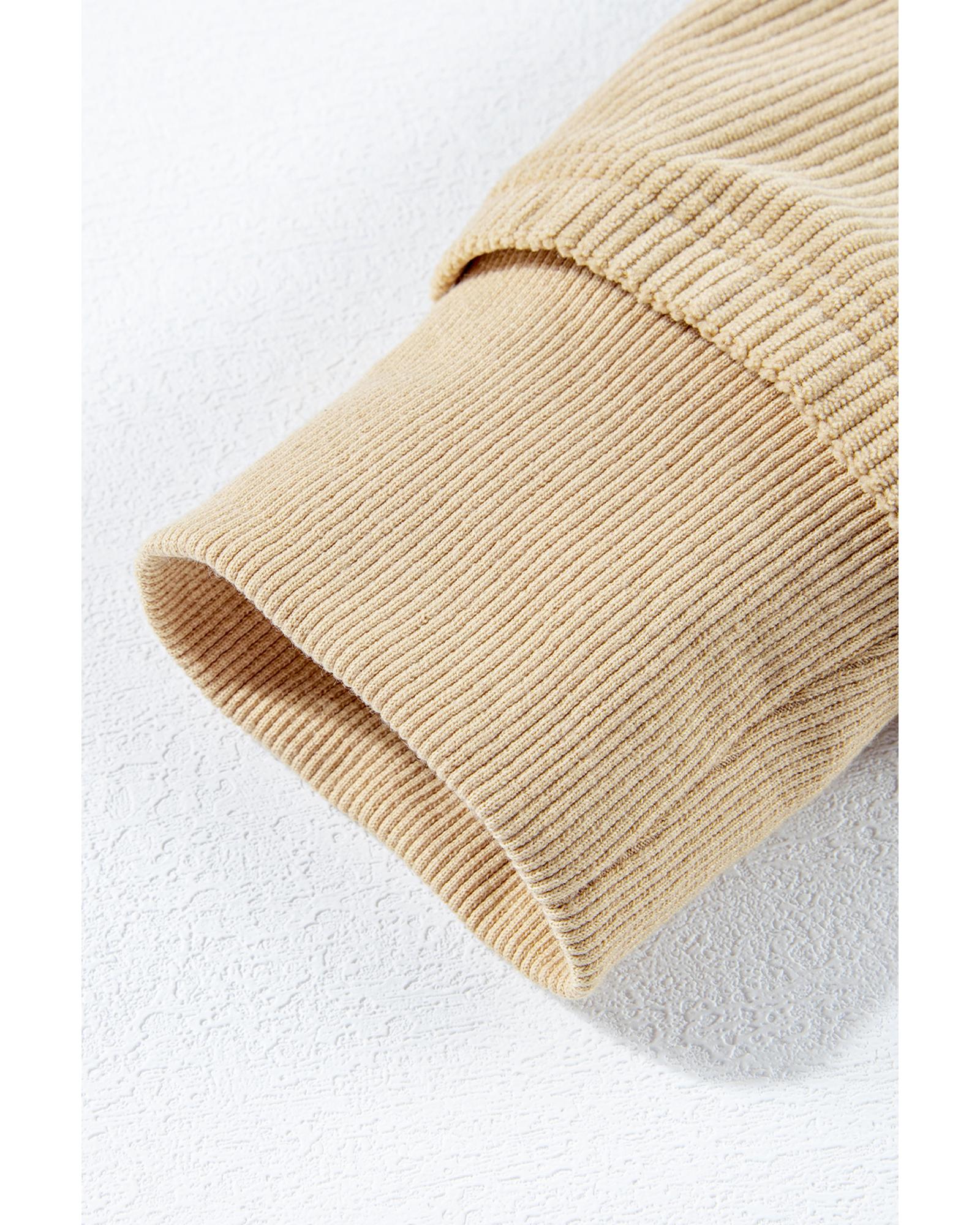 Simply Taupe Solid Ribbed Knit Buttoned Drop Shoulder Oversized Hoodie – S