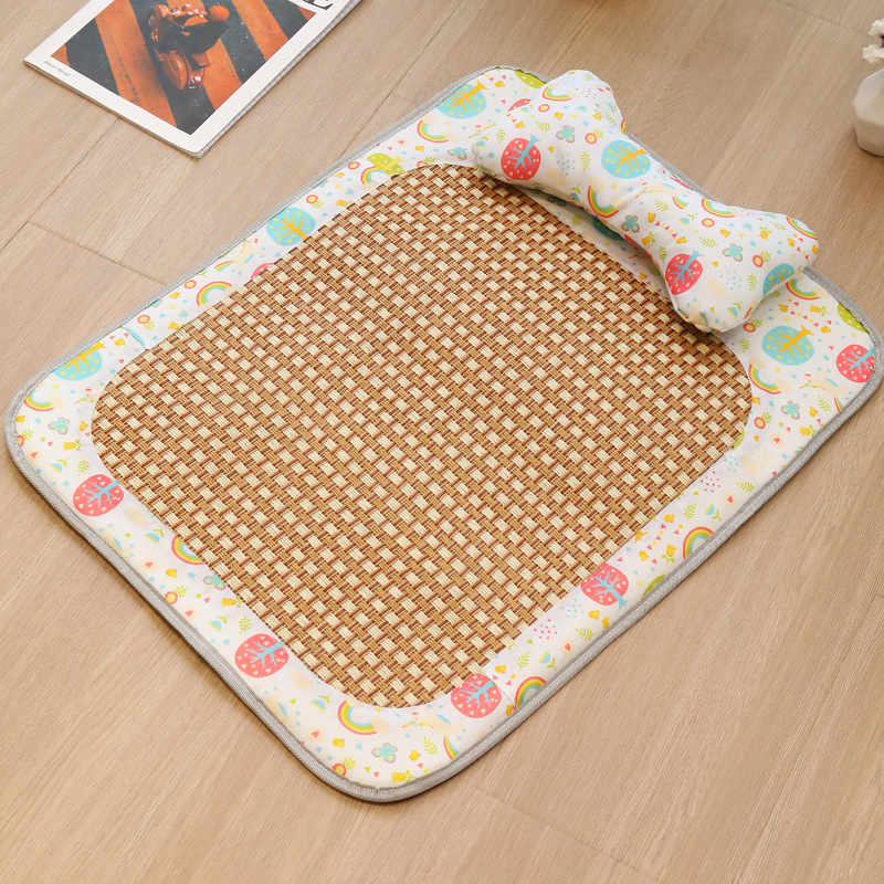 Keep your furry friends cool and comfortable with this Pet Cooling Mat, designed for both dogs and cats! Crafted with a breathable woven rattan surface, this mat naturally dissipates heat, making it perfect for hot summer days. The soft sponge cushion provides extra comfort, while the durable, chew-resistant design ensures long-lasting use. With its cute cartoon patterns and bone-shaped pillow, this mat is not only functional but also a stylish addition to your pet’s space. Suitable for all seasons, it offers a cozy spot for your pet to relax year-round.