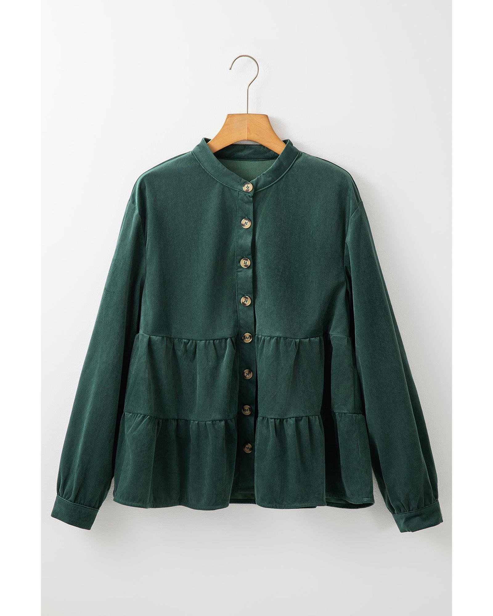 - Skobeloff Corduroy Ruffle Tiered Buttoned O Neck Shirt