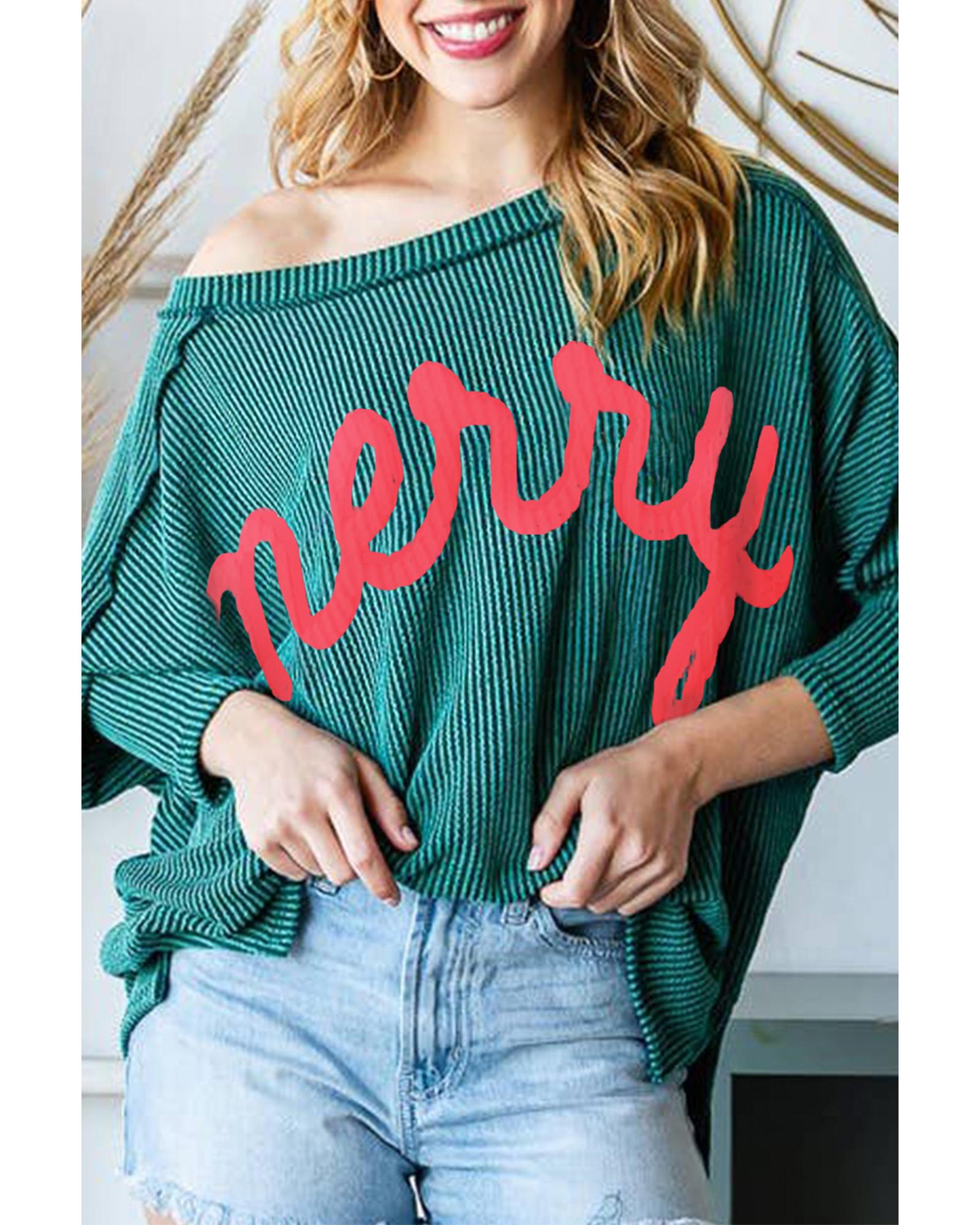 Skobeloff Merry Graphic Corded Batwing Sleeve Knit Top – L