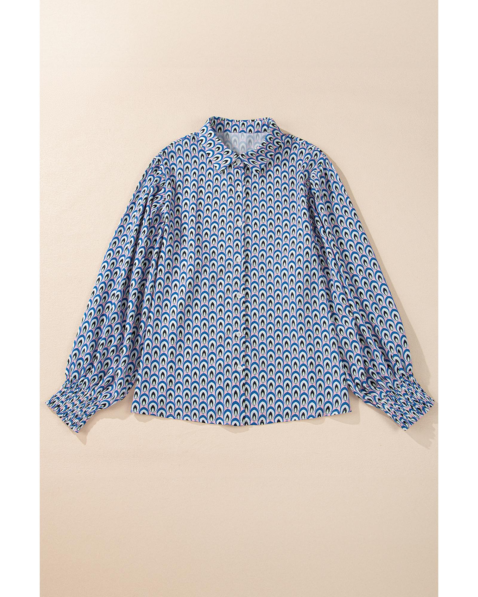 Sky Blue Abstract Print Shirred Cuff Buttoned Oversized Shirt – XL