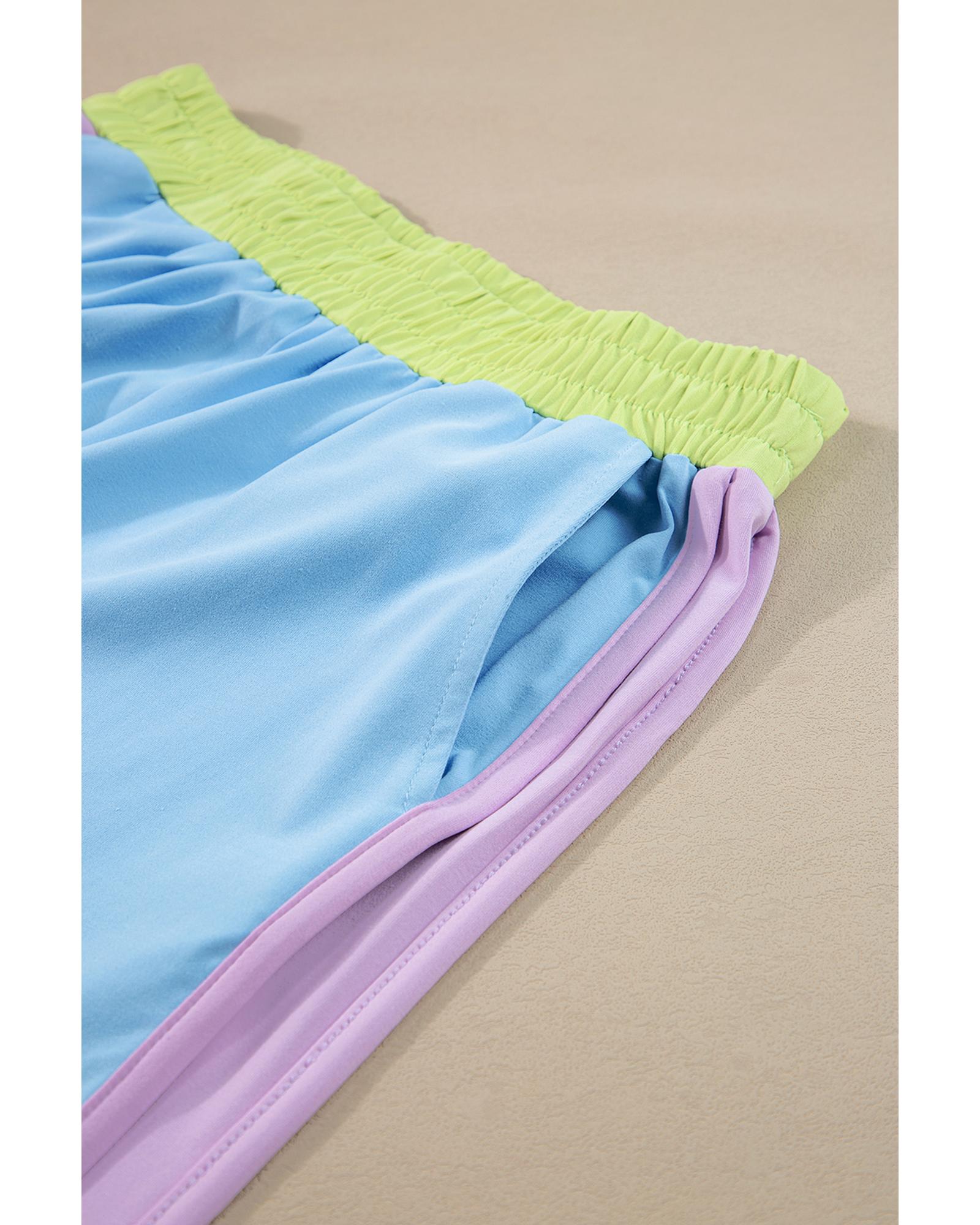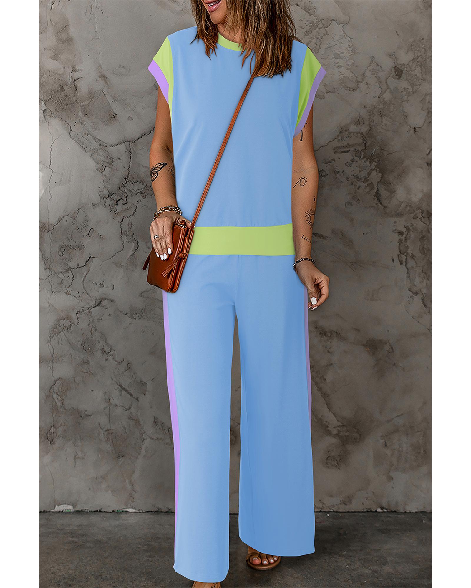 Sky Blue Color Block Detail Casual Two-piece Outfit – S