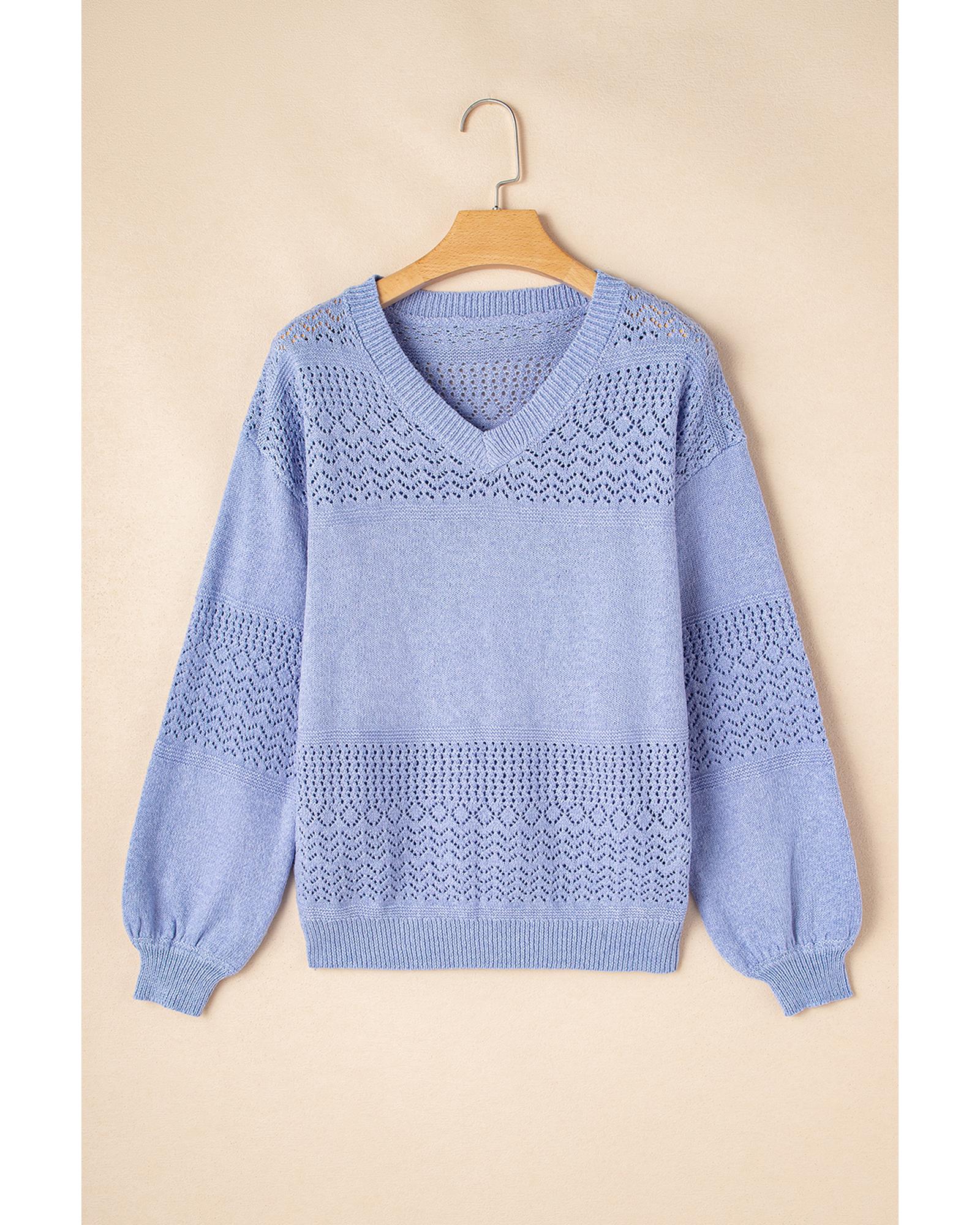 Sky Blue Eyelet Pattern Detail V Neck Drop Shoulder Sweater – XL