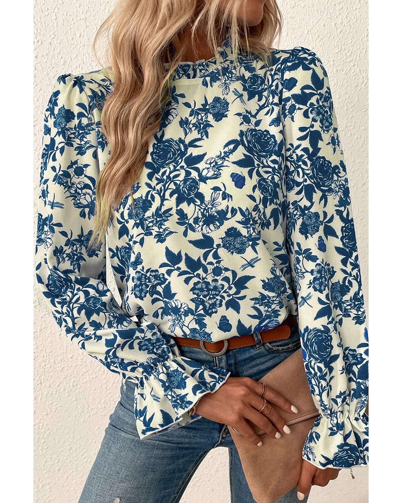 - Sky blue floral print blouse
