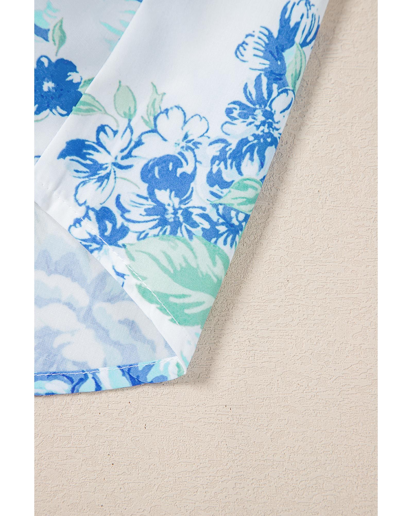 Sky Blue Floral Print Ruffle Sleeve Frilly Button Up Shirt – M