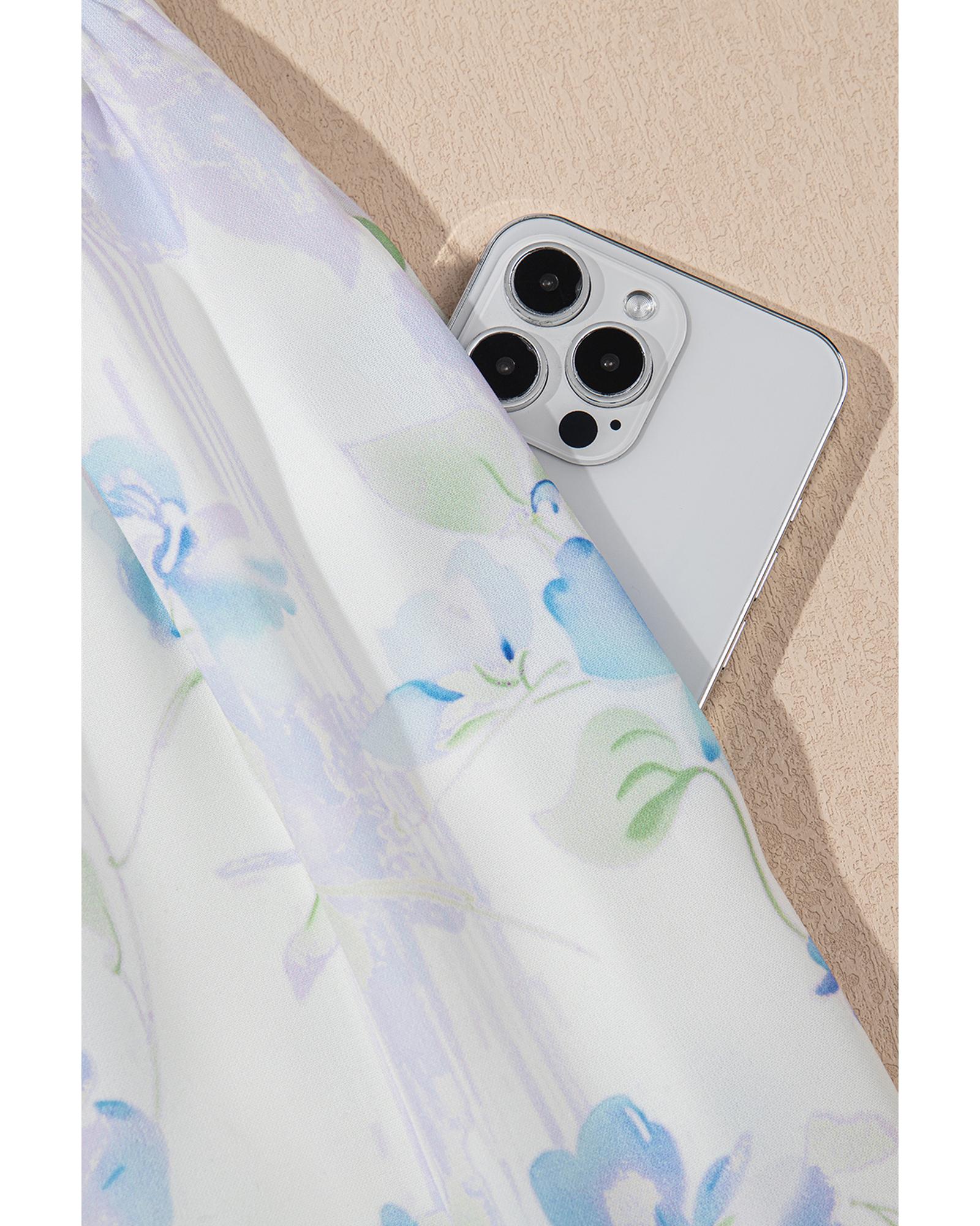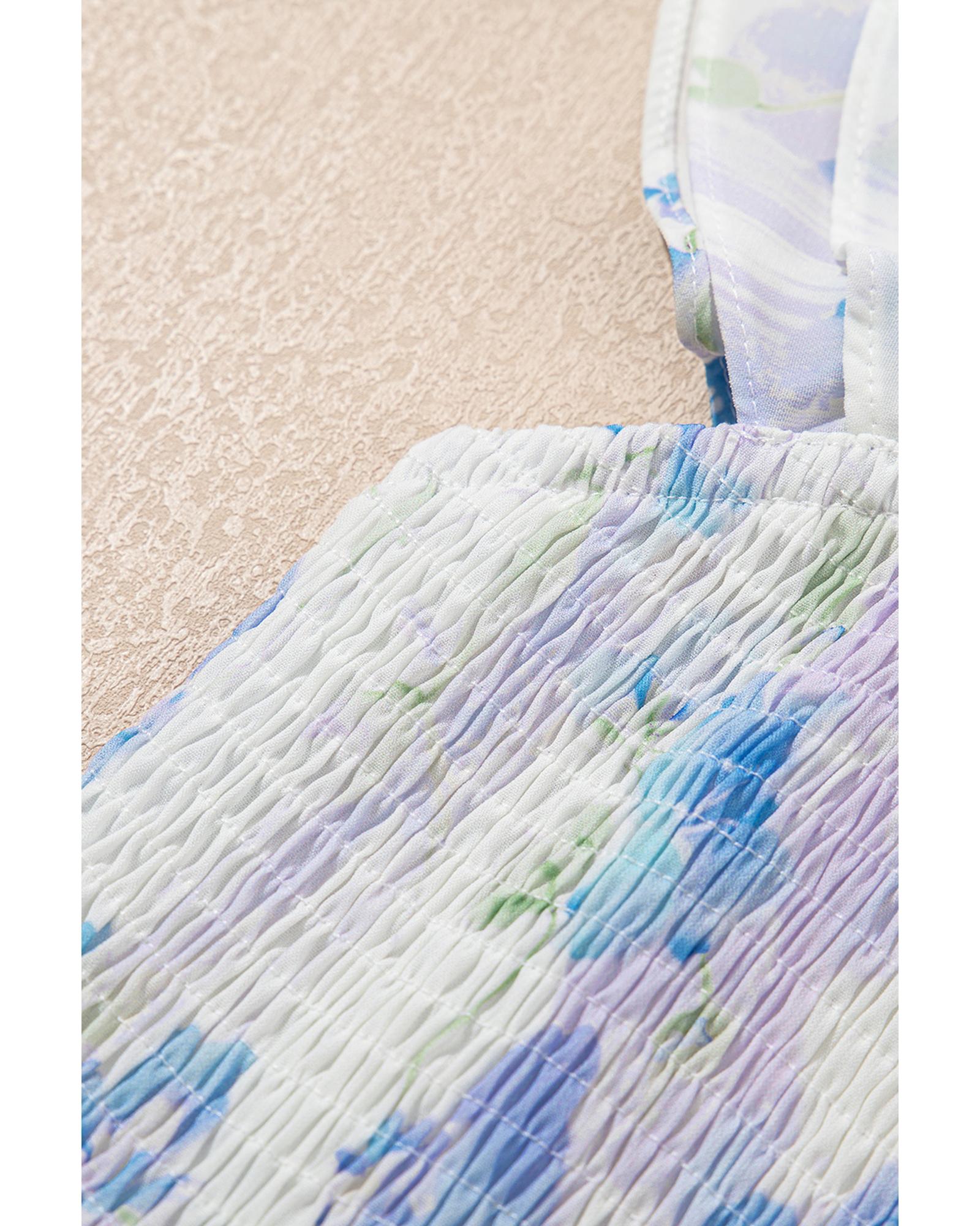 Sky Blue Floral Smocked High Waist Double Ruffle Sleeveless Long Dress – XL