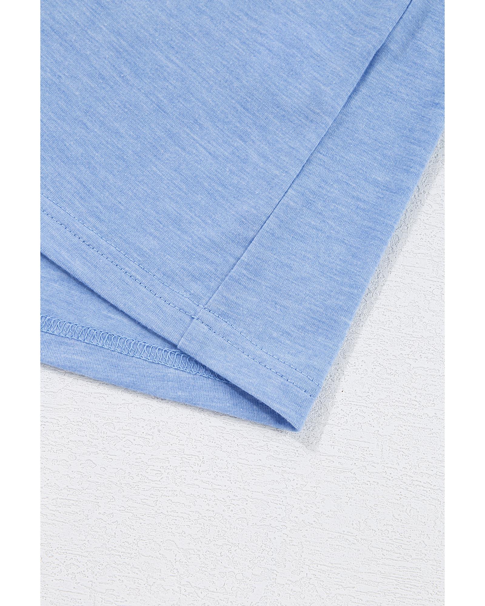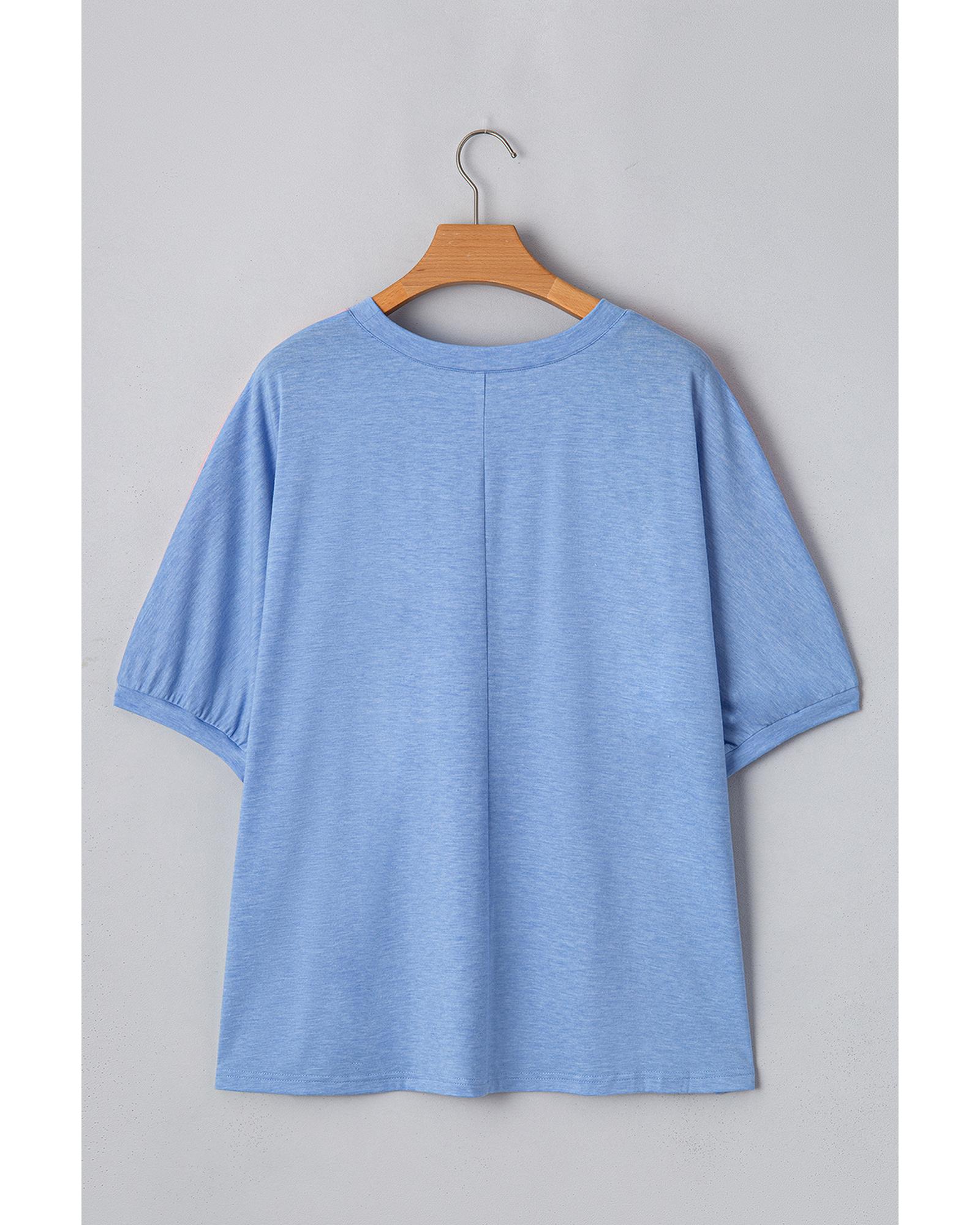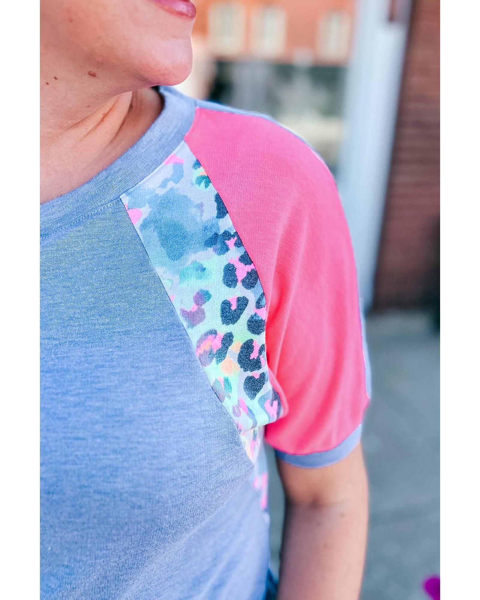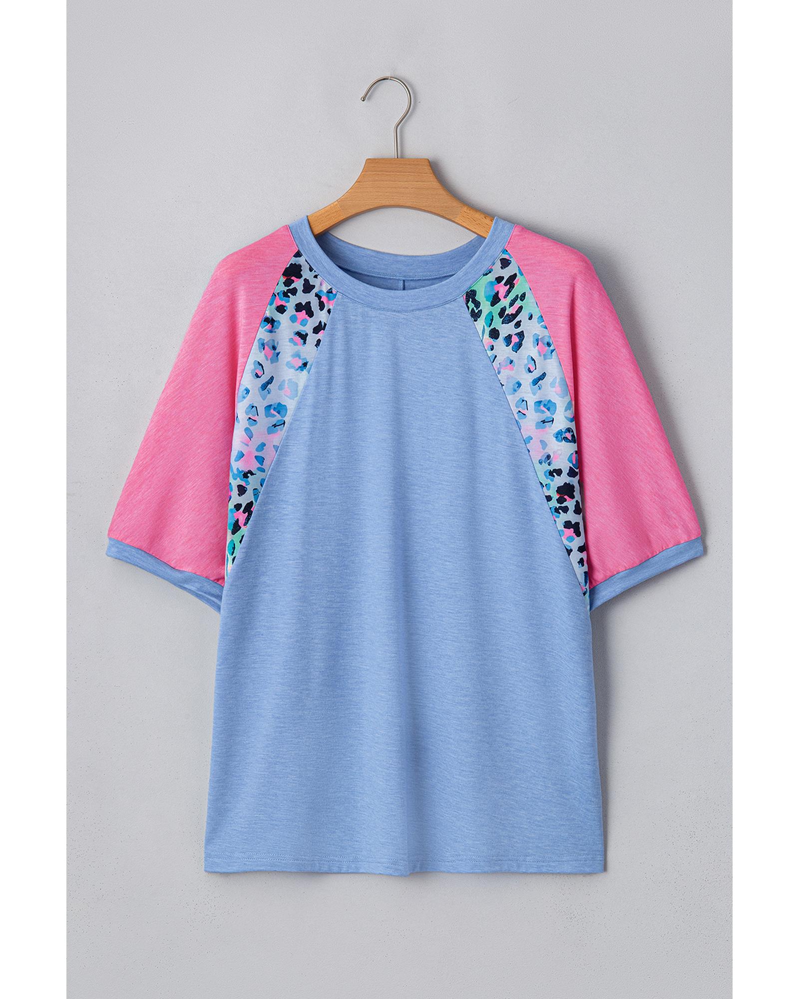 Sky Blue Leopard Print Patch Colorblock Plus Size T Shirt – 2X