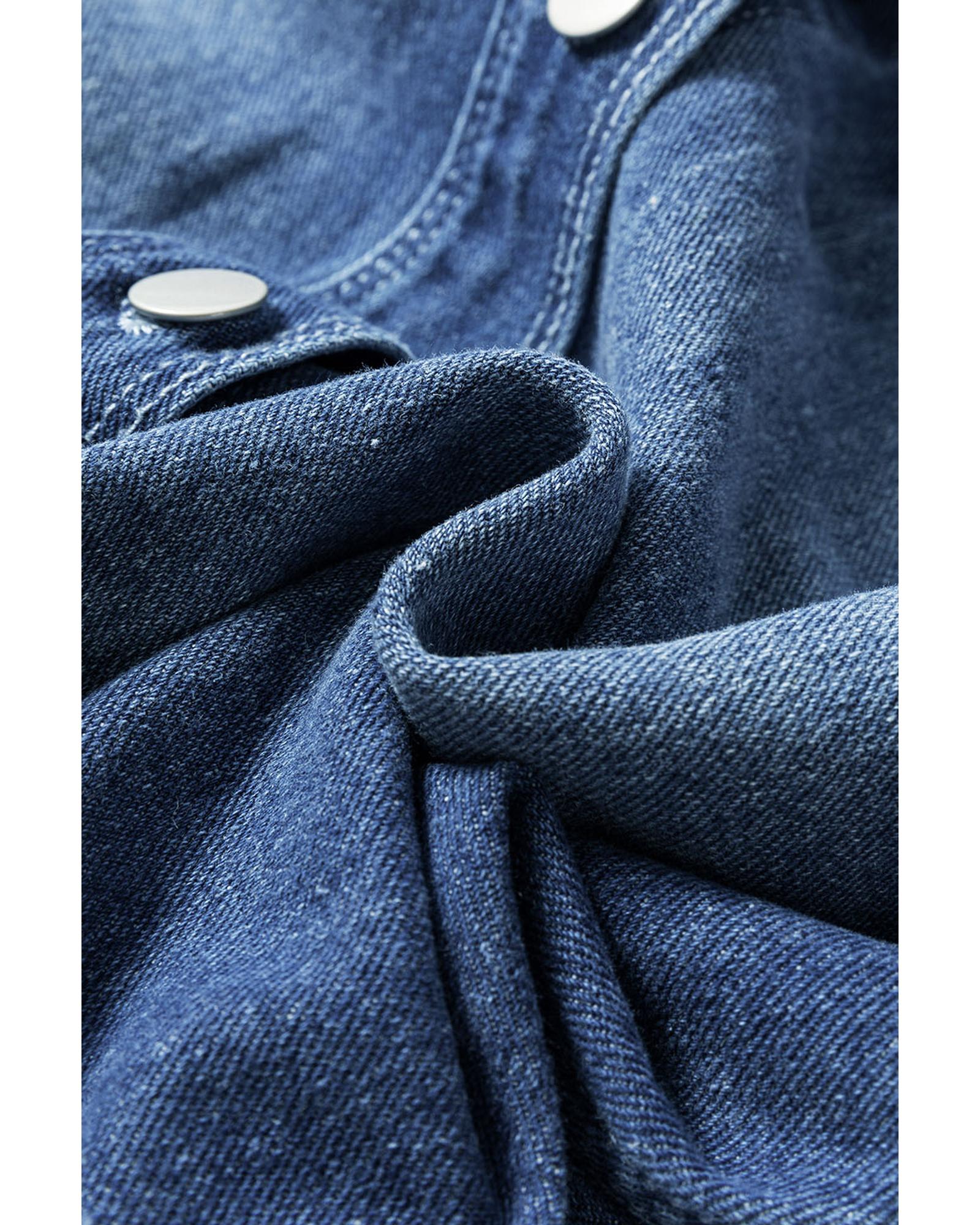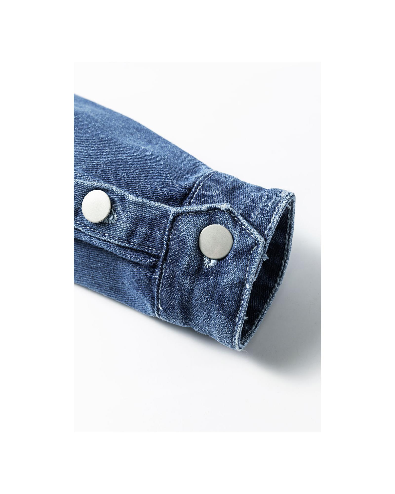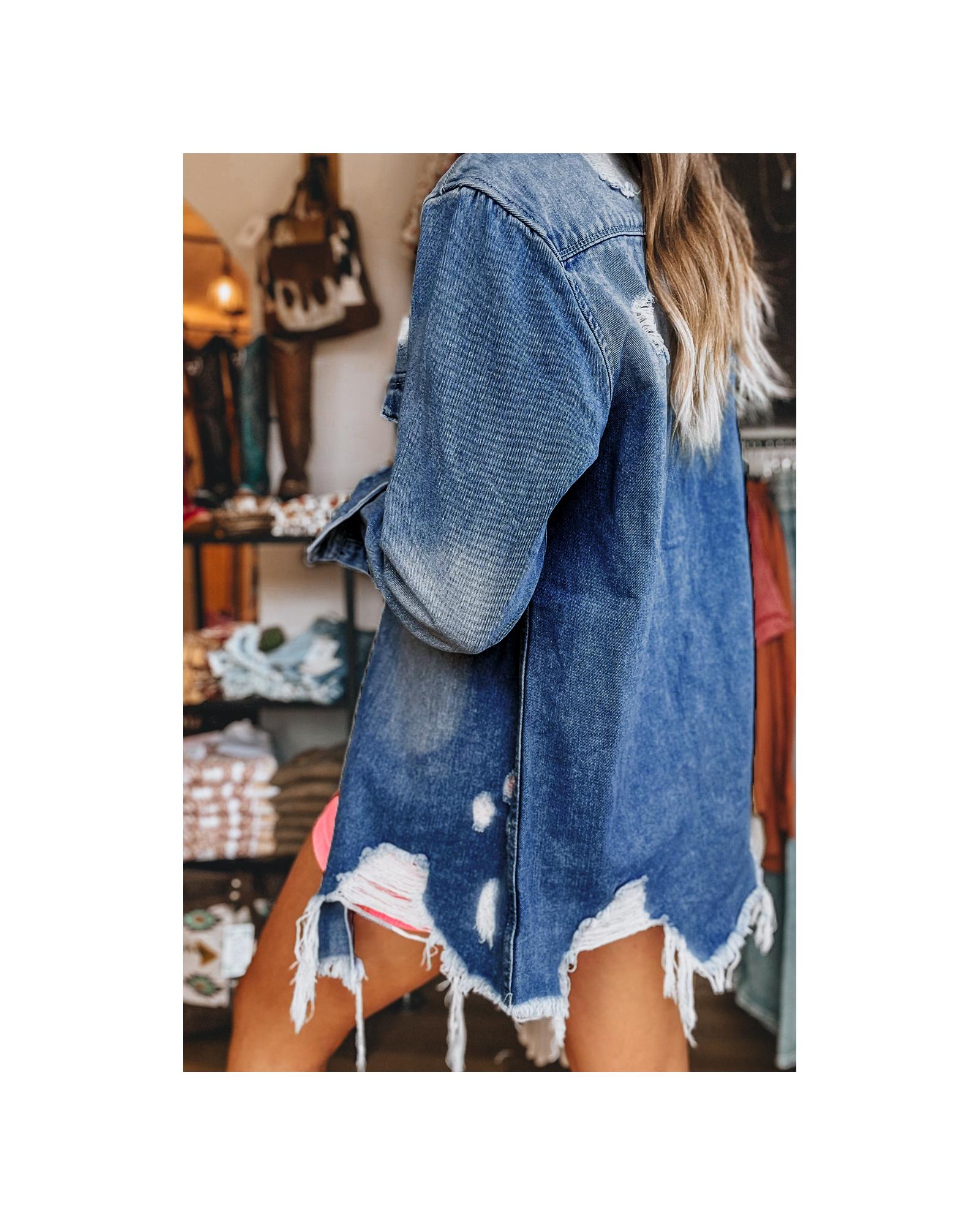 Sky Blue Light Wash Distressed Frayed Long Denim Jacket – 2XL