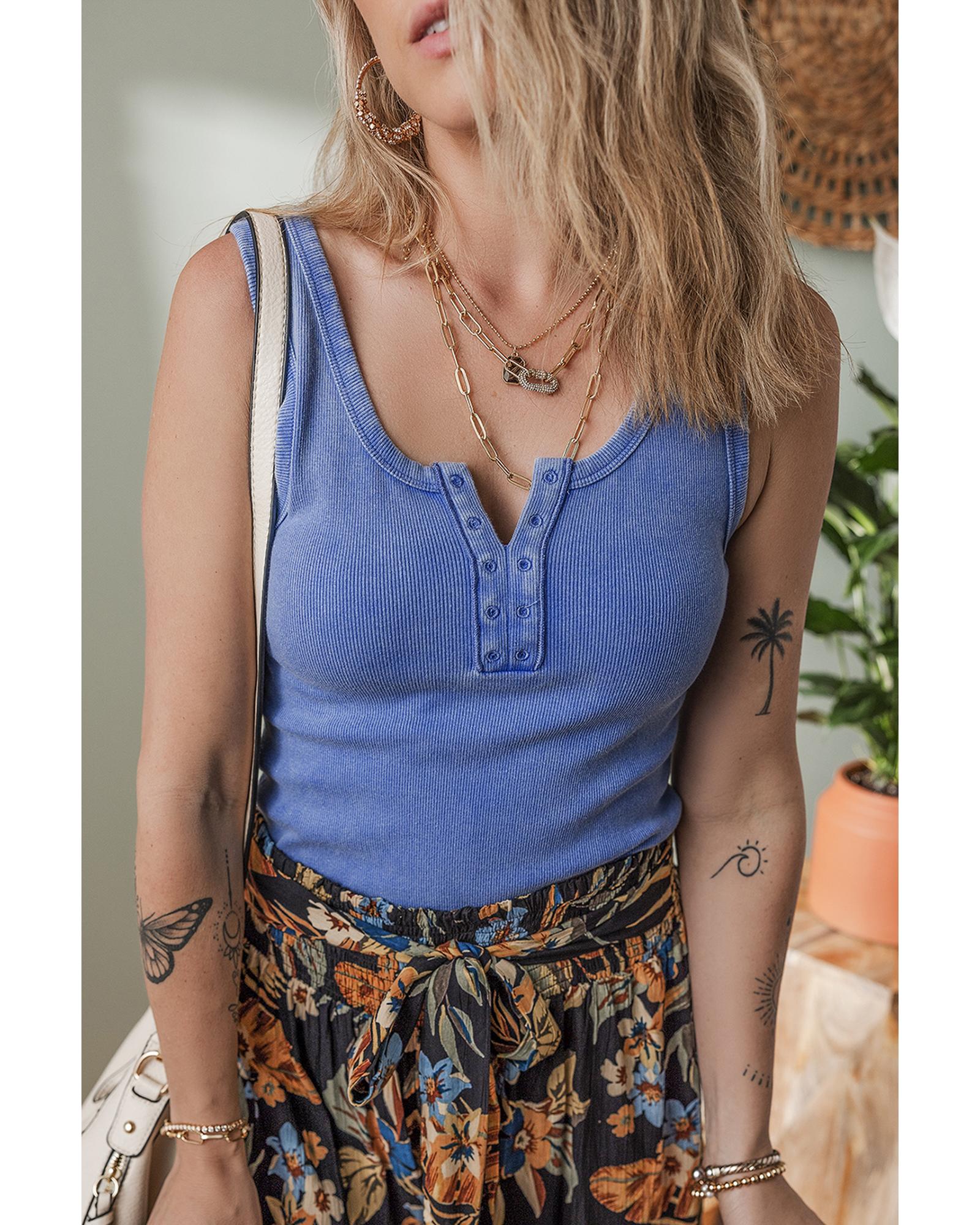 Sky Blue Mineral Wash Ribbed Notch Neck Tank Top – XL