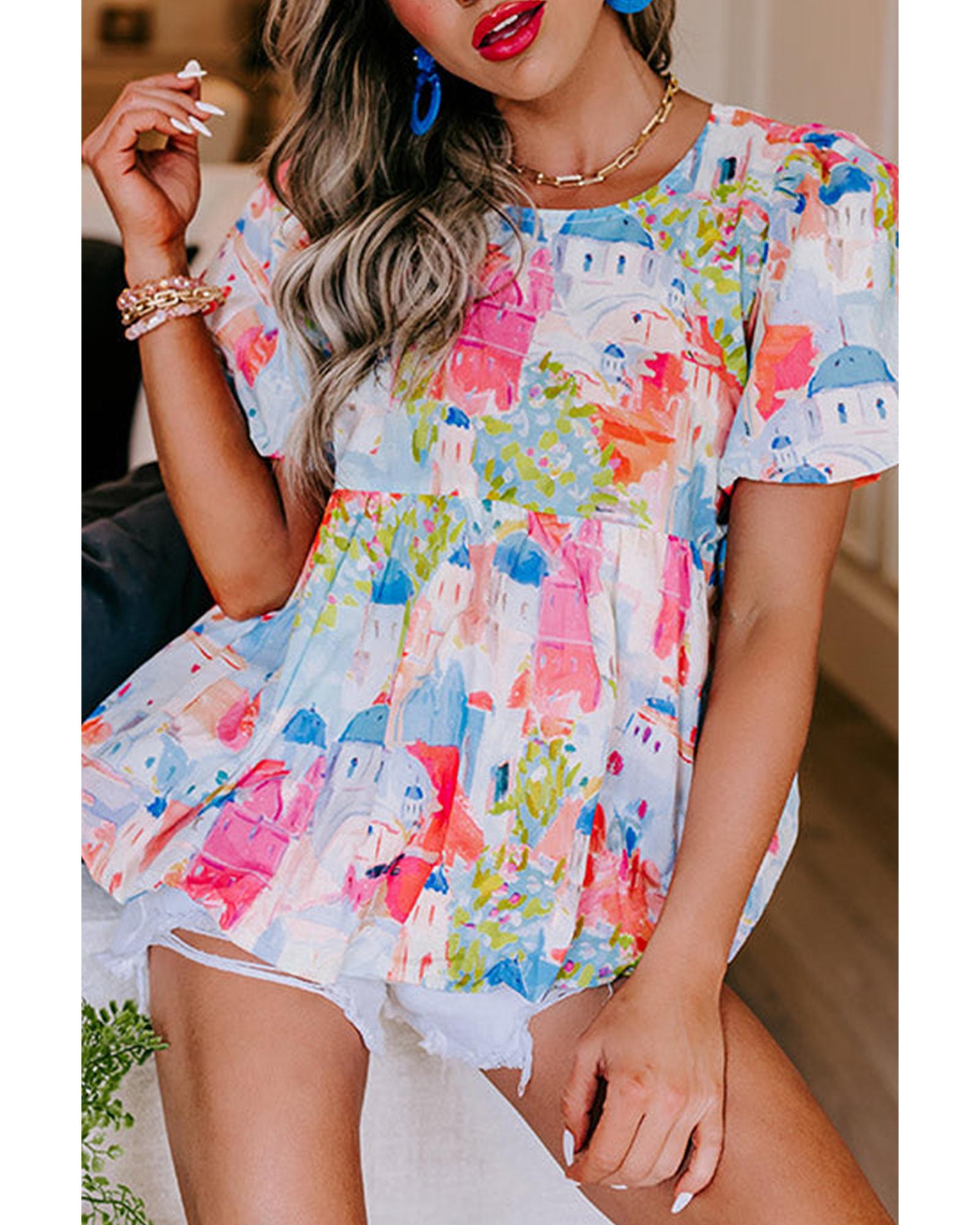 Sky Blue Parisian Avenue Babydoll Top – XL