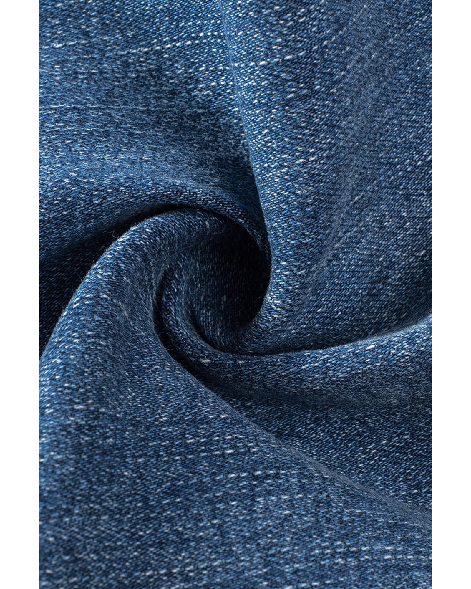 Sky Blue Flap Pocket Buttoned Raw Hem Denim Jacket - S