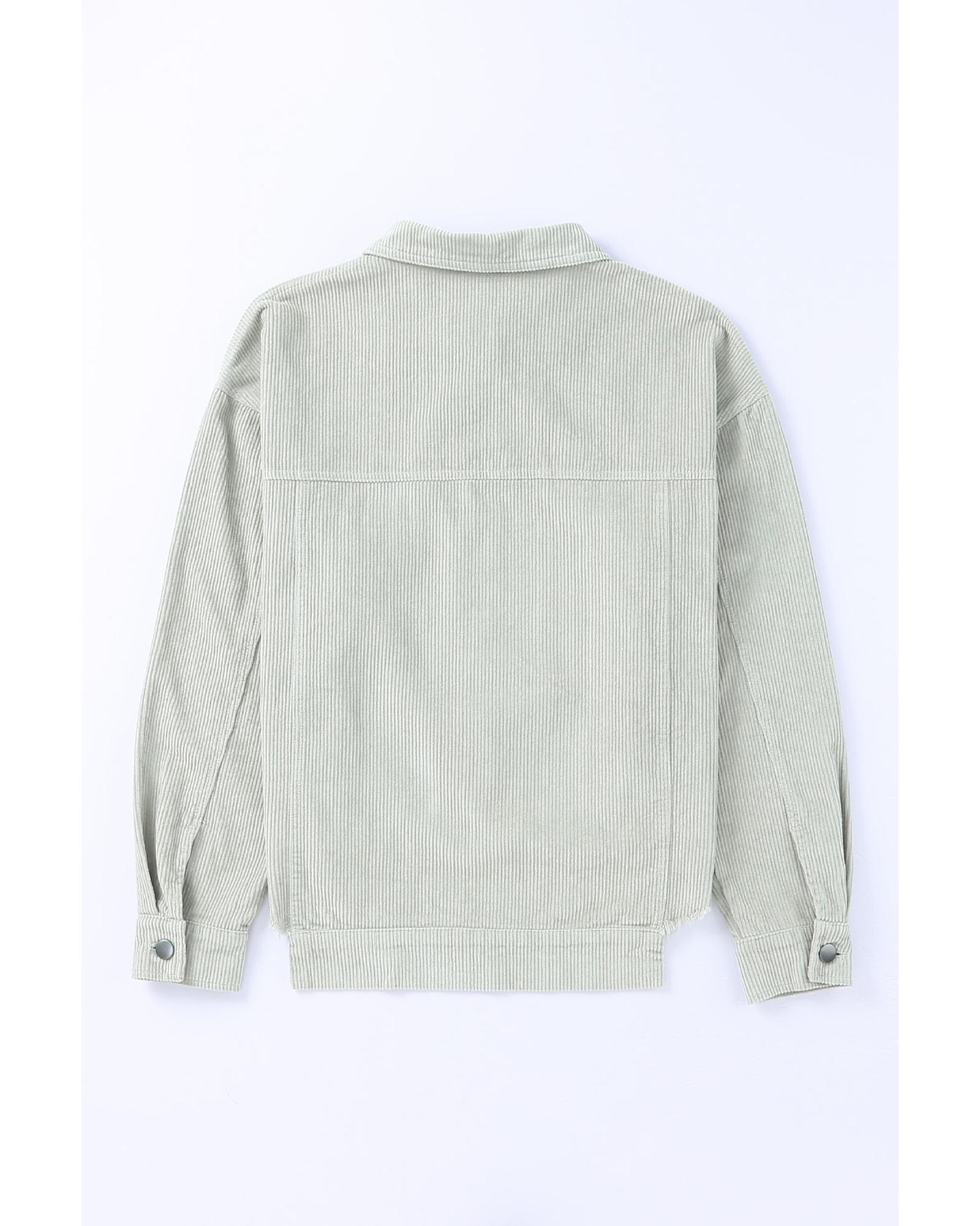 Sky blue sequined Santa Claus flap pocket corduroy jacket Unique Santa Claus print on the flap pocket Made from high - quality corduroy fabric Comfortable and durable Available in multiple sizes Perfect for adding a touch of holiday cheer to your outfit Versatile and easy to style with jeans or trousers Ideal for festive occasions or everyday wear
