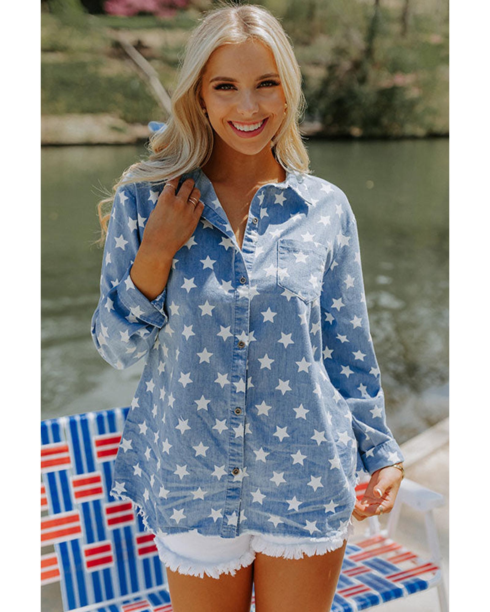 - Sky blue denim jacket with star print