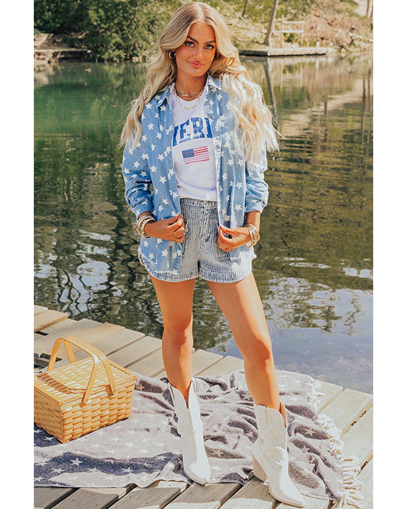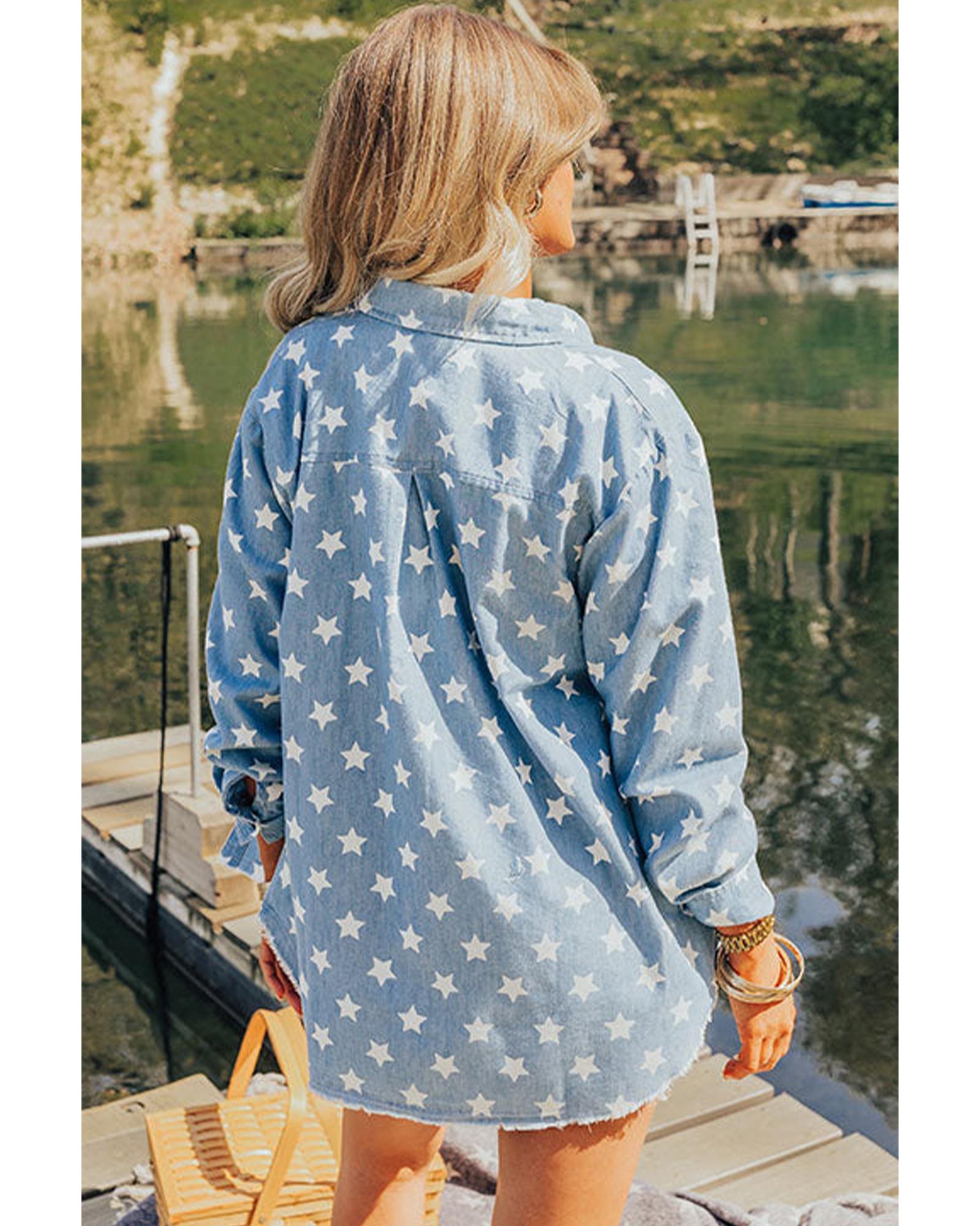 - Sky blue denim jacket with star print