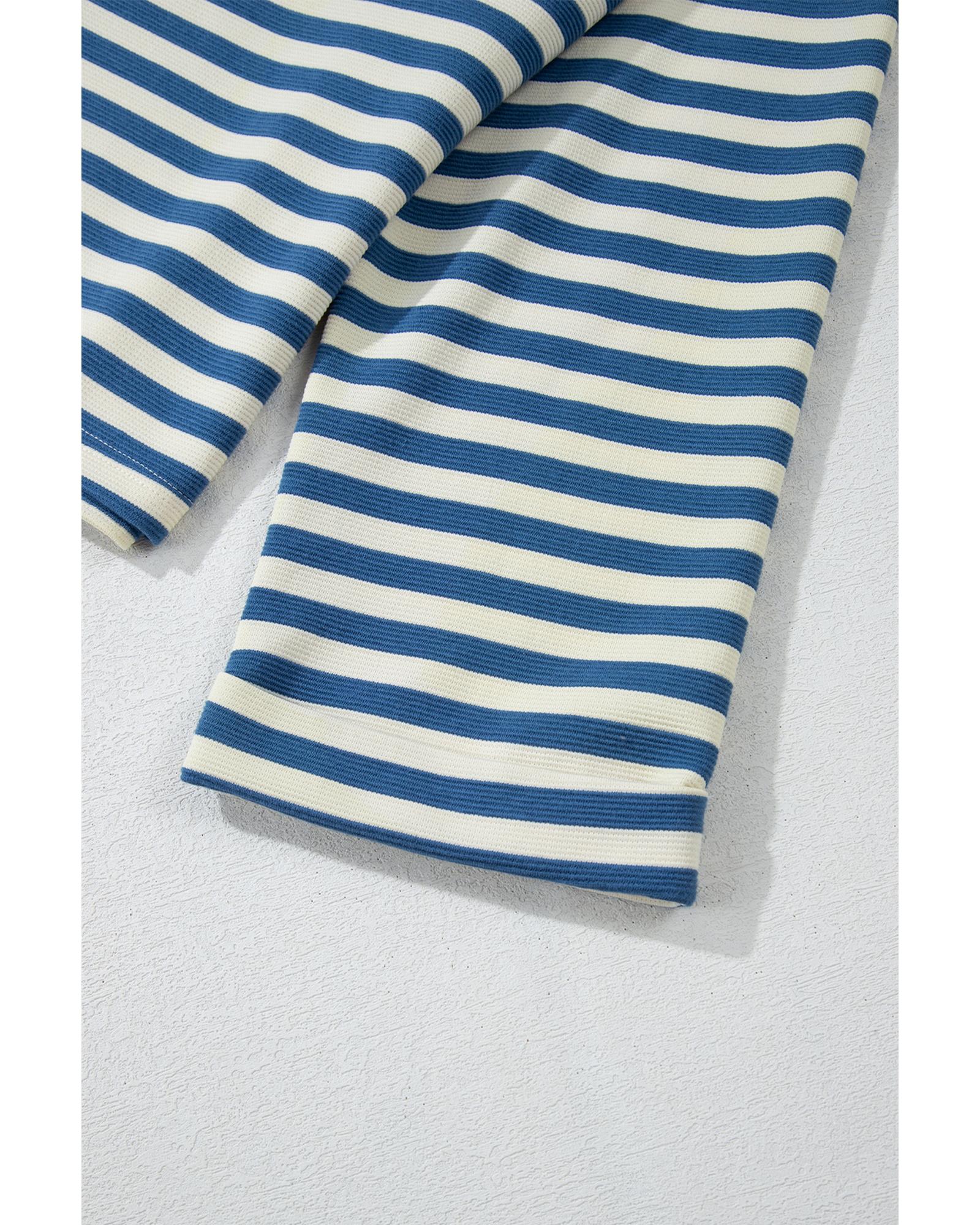 Sky Blue Stripe Chest Pocket Buttoned Back Notched V Neck Top – M