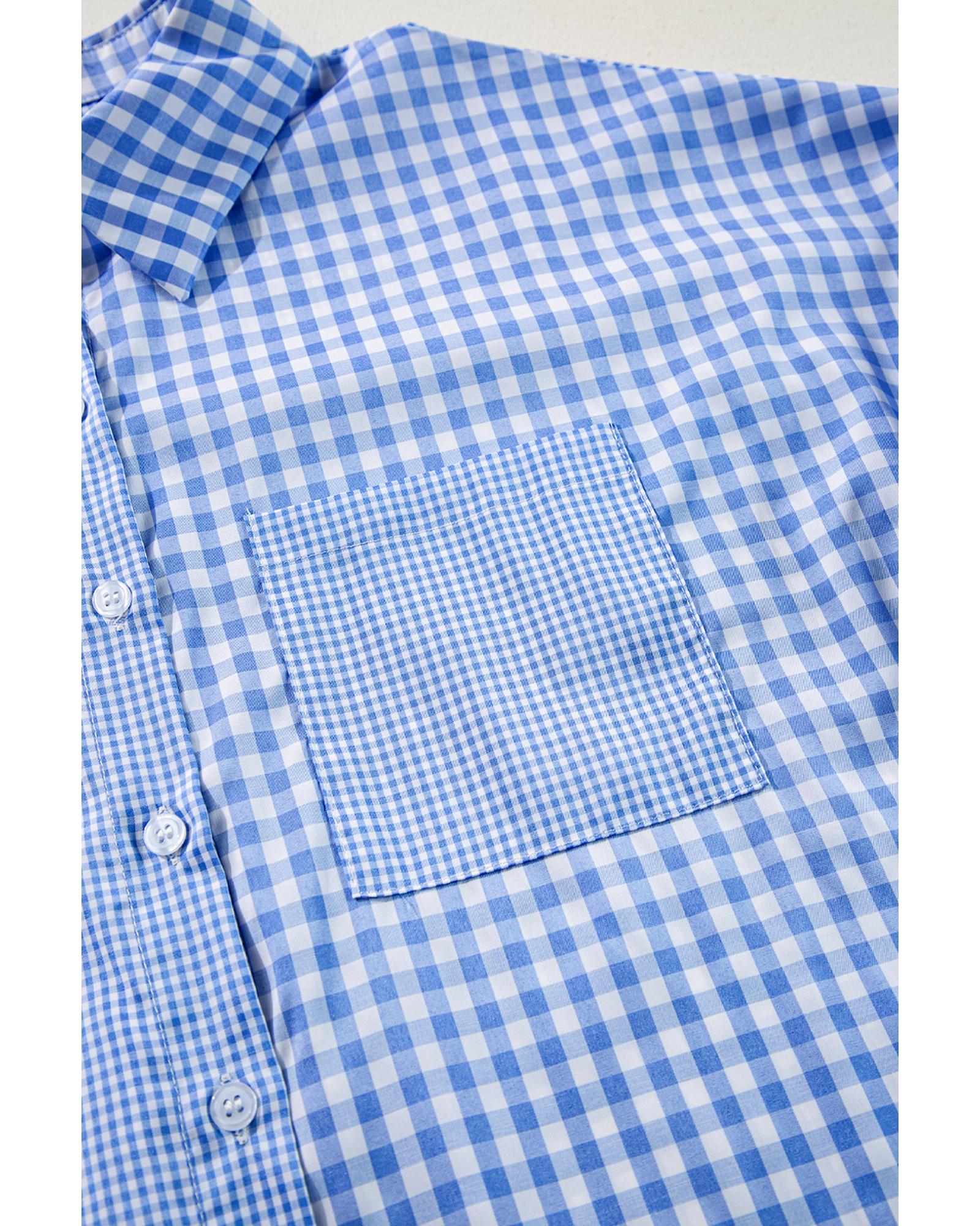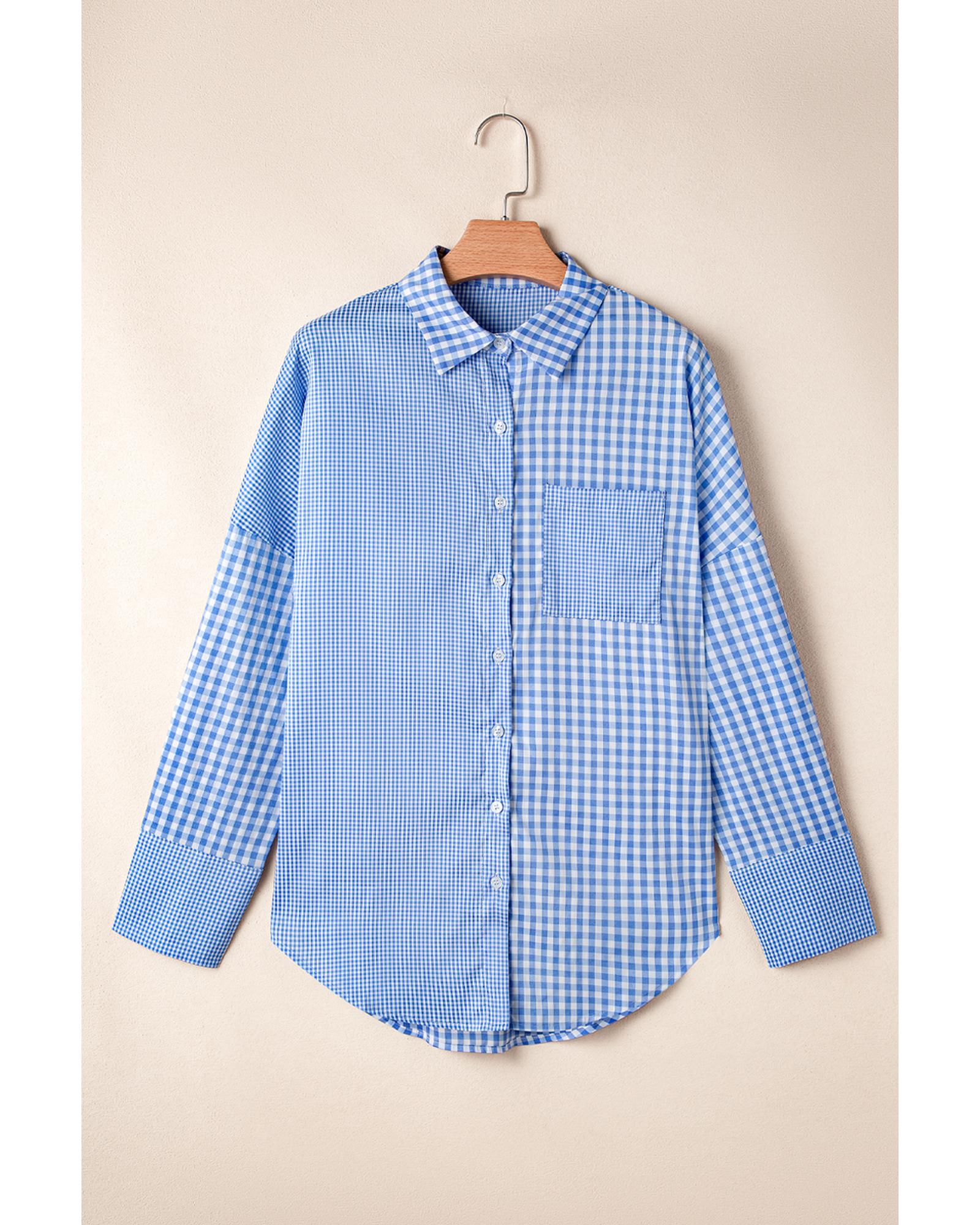 Sky Blue Stripe Plaid Patchwork Button up Long Sleeve Shirt – S