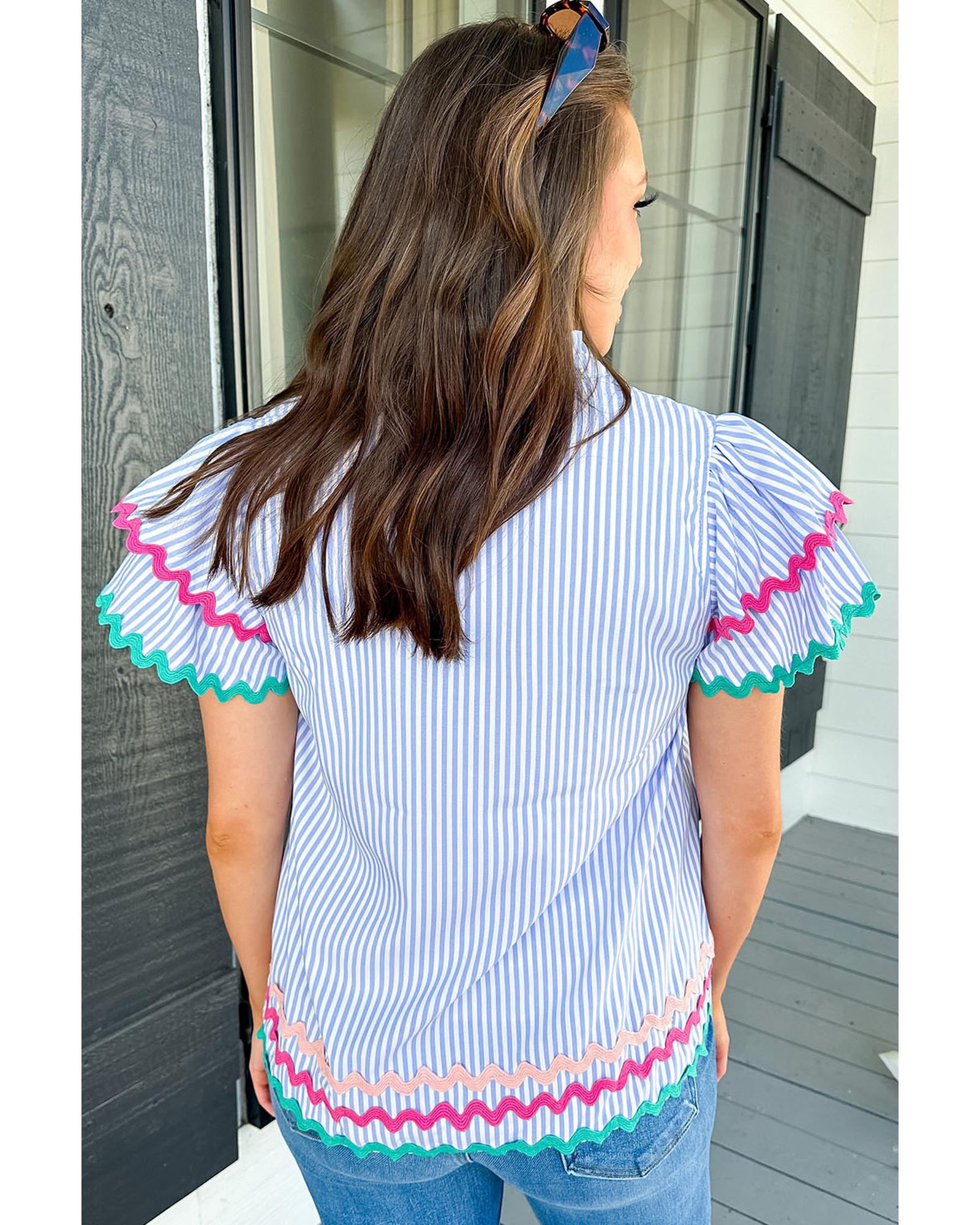 - Sky blue striped blouse with ricrac trim