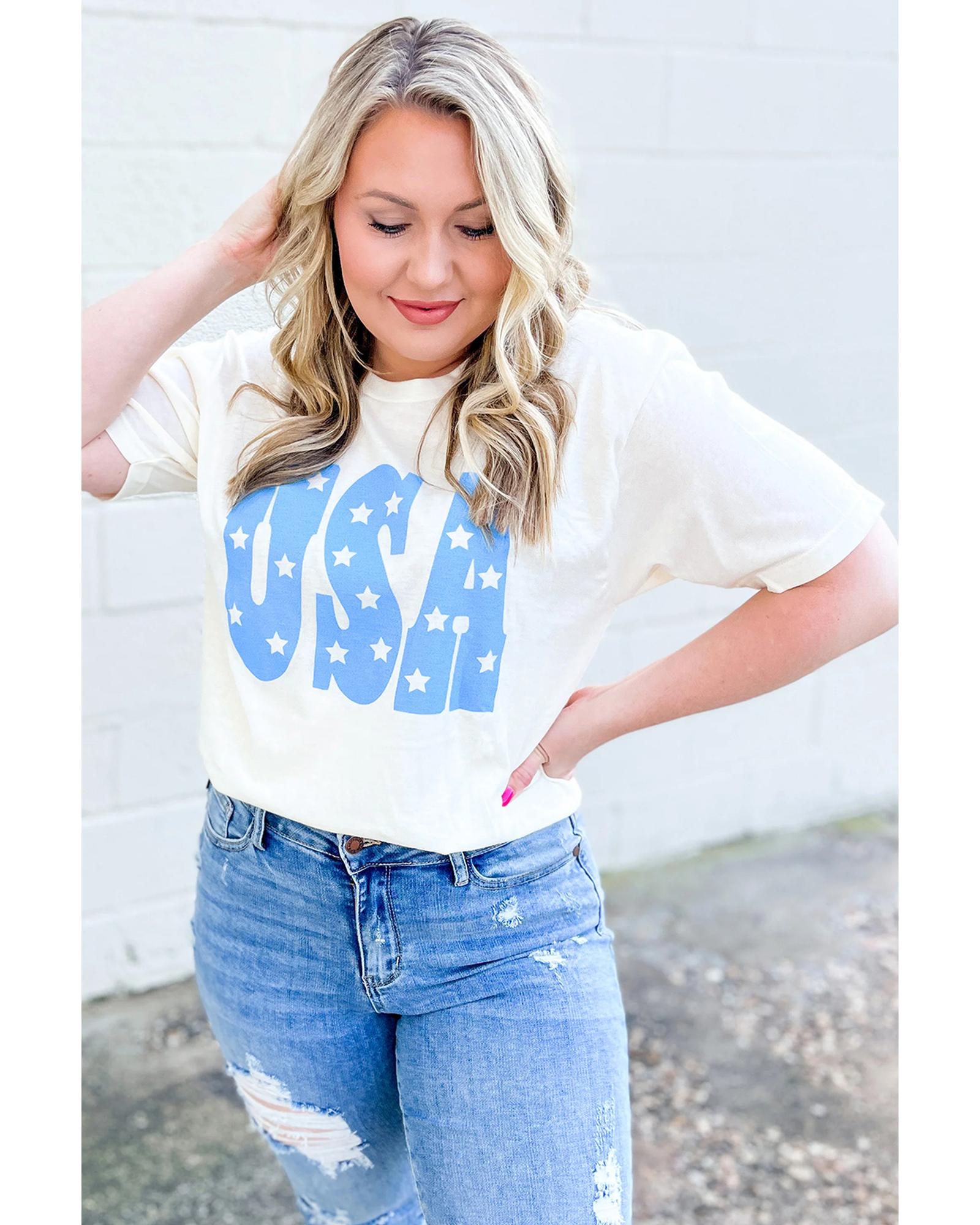 Sky Blue USA Graphic Crewneck Plus Size Patriotic Tee - 2X