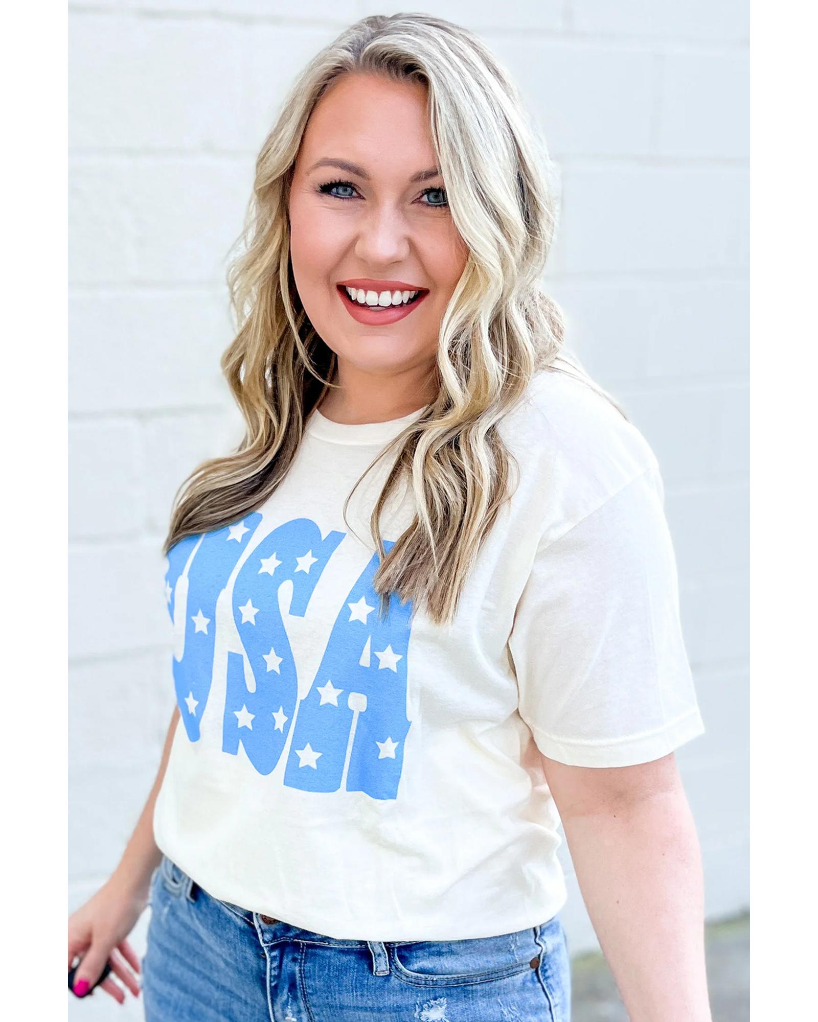 Sky Blue USA Graphic Crewneck Plus Size Patriotic Tee - 2X