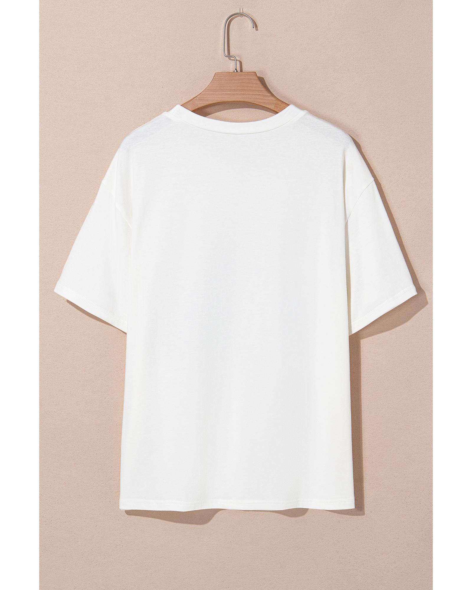 White Diverse Bowknot Printed Crew Neck Plus Size Tee - 1X