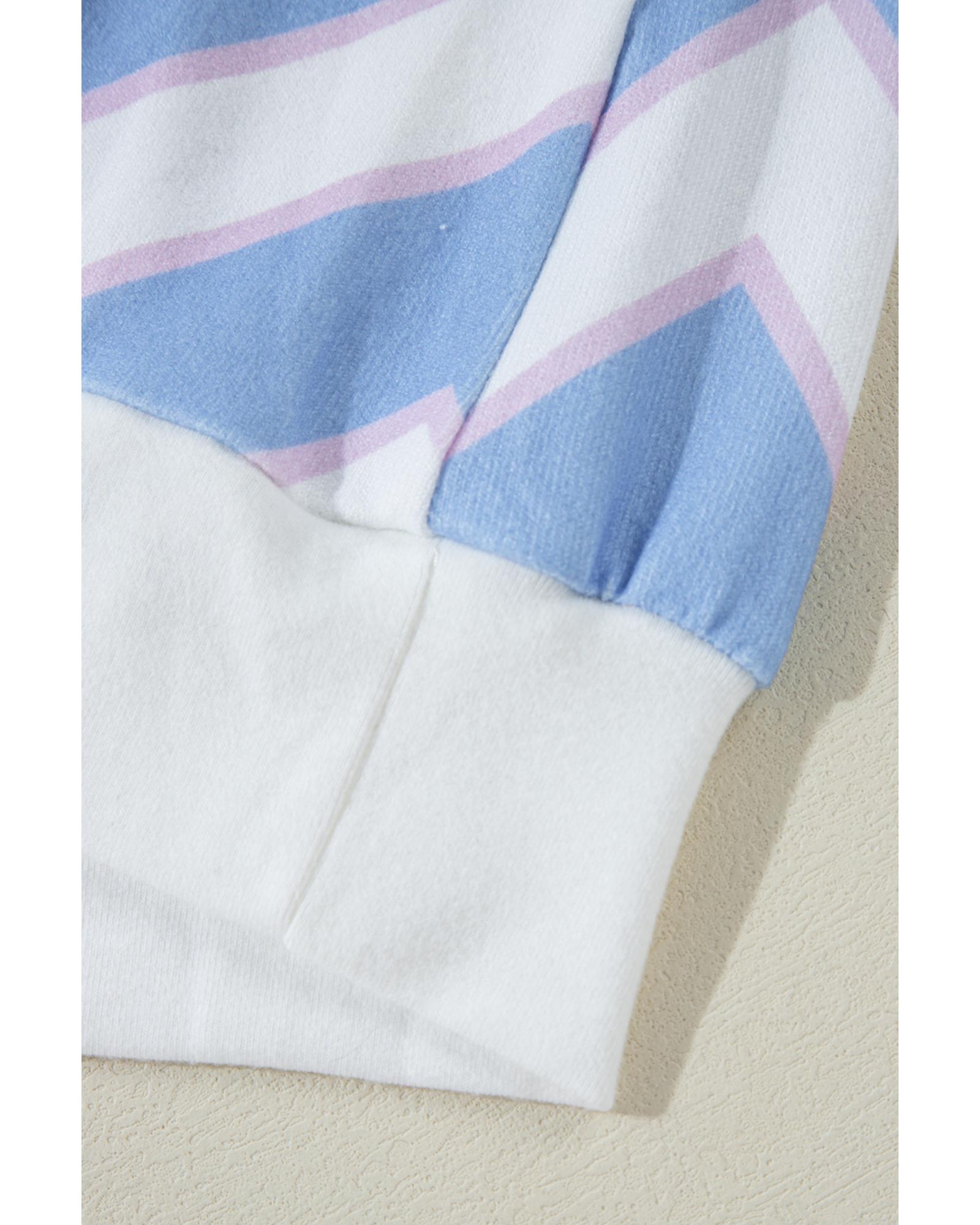 Sky Blue Zigzag Striped Print V Neck Oversized Top – L
