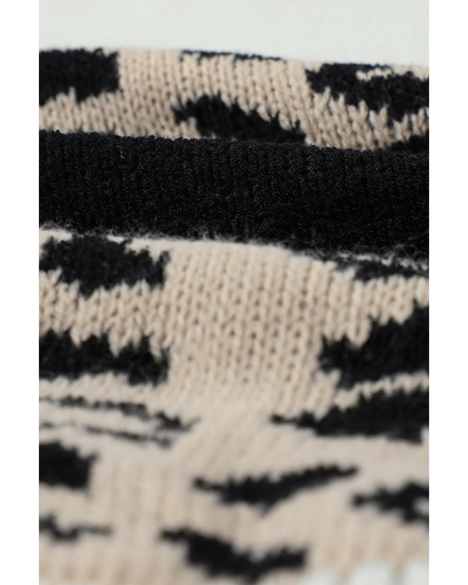 Slouchy Drop-shoulder Leopard Striped Colorblock Sweater – S
