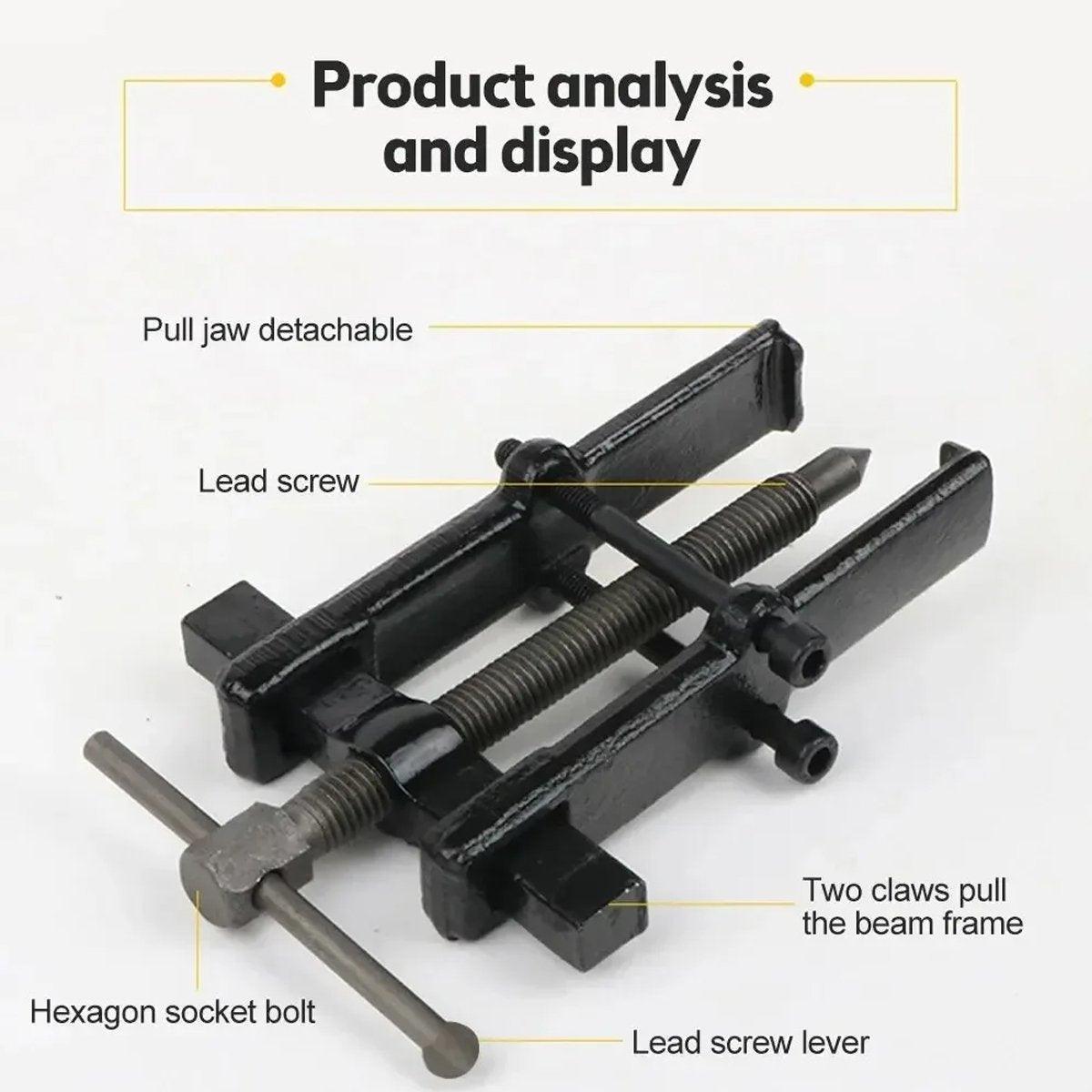 This two-claw bearing puller is a versatile tool designed for easy dismantling of gears, pulleys, and small wheels. With its high-quality construction, it is perfect for both professional and DIY enthusiasts. The tool features a simple yet effective design that offers excellent grip and stability while pulling components off shafts. The durable material ensures long-lasting use and can handle various applications, making it an essential addition to your toolkit.