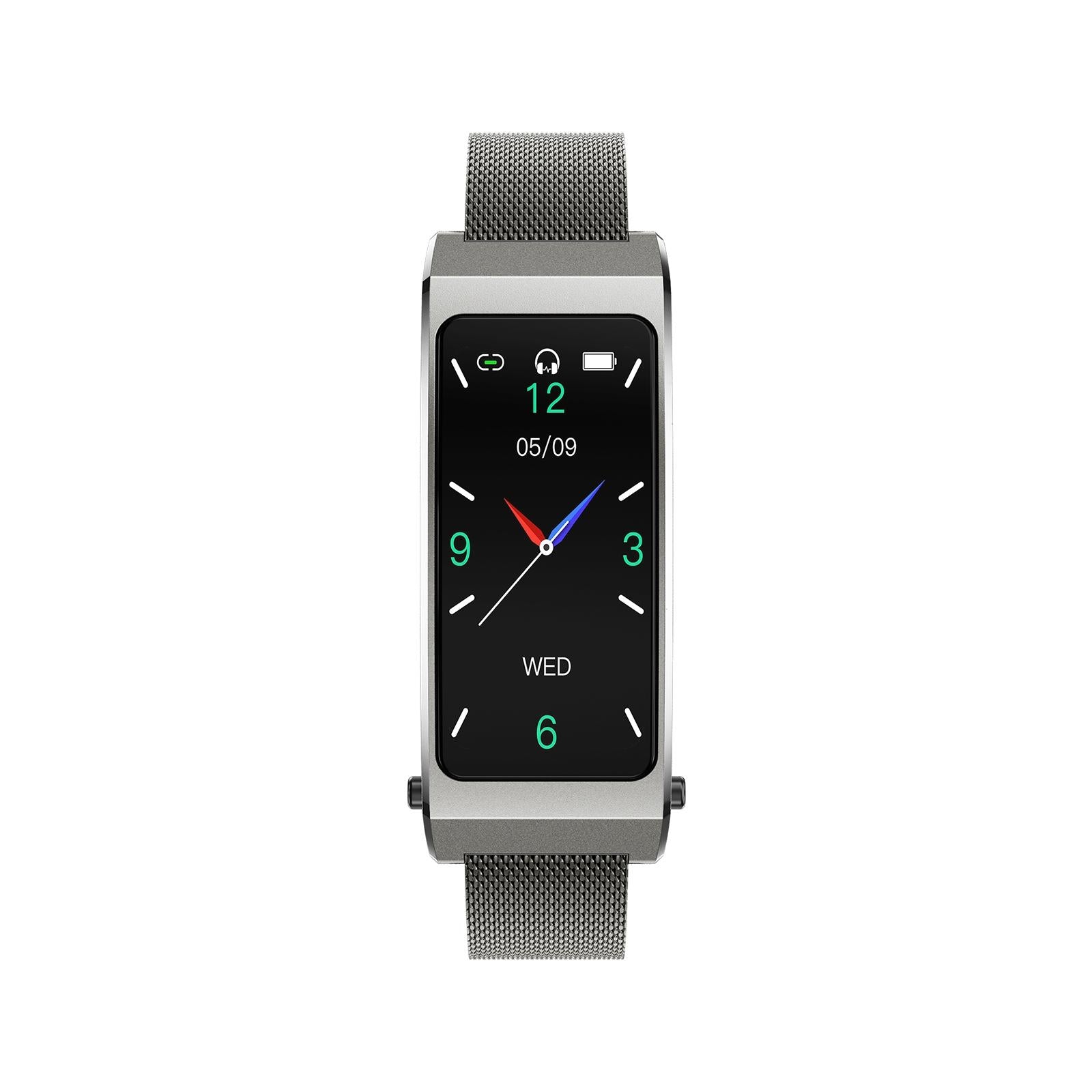 • Multiple functions including calling, music playback, pedometer, distance measurement, calorie tracking, heart rate monitoring, blood pressure monitoring, blood oxygen level monitoring, sleep management, exercise tracking, time display, and alarm clock reminder