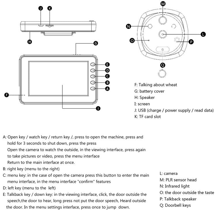 • 1 x 4.3 Inch Display Screen 3.0Mp Camera Video Smart Doorbell Support Tf Card 32Gb Max Motion Detection Infrared Night Vision